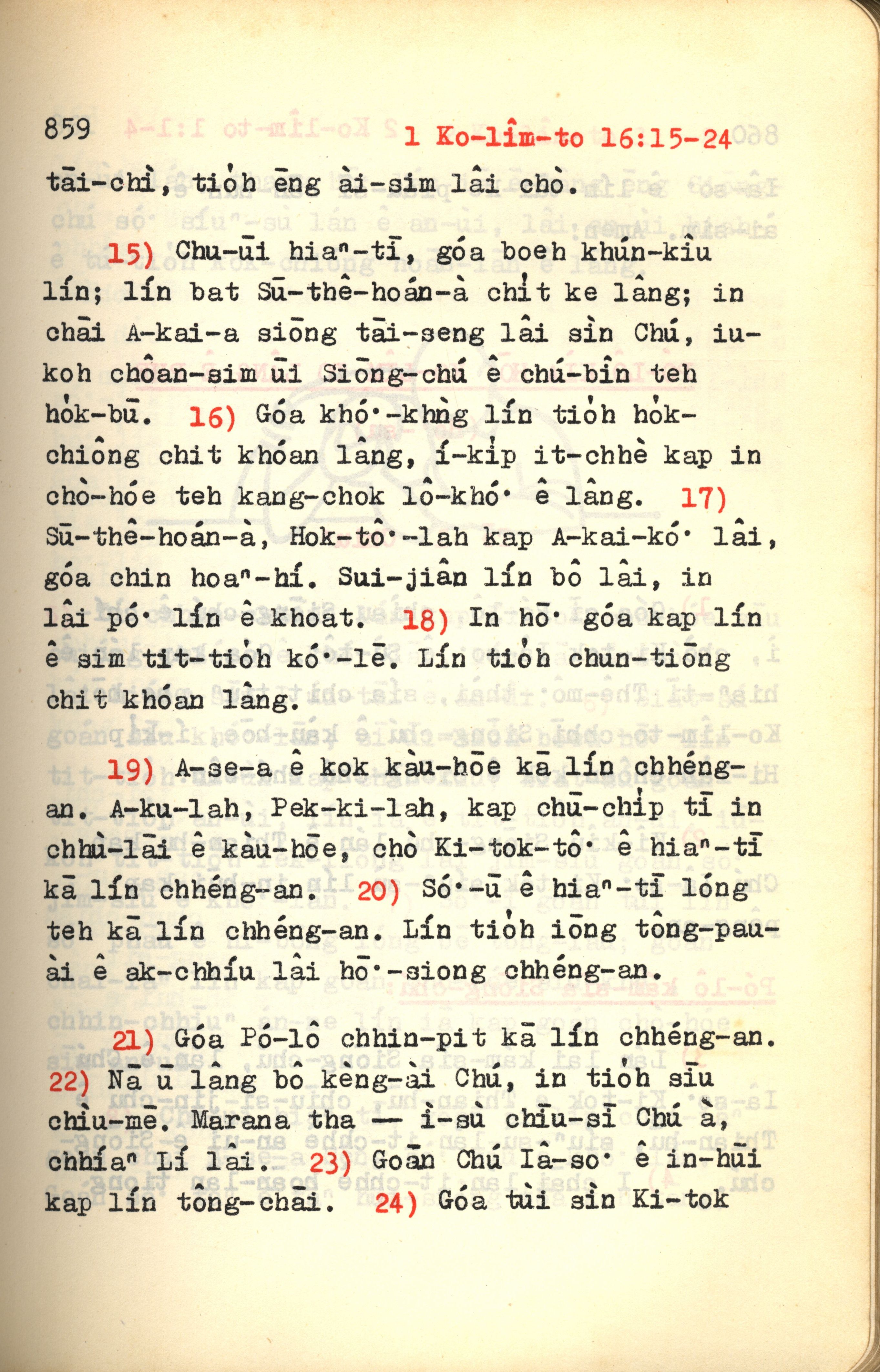 1972年新約紅皮聖經 哥林多前書 16 章 15 節到 16 章 24 節
