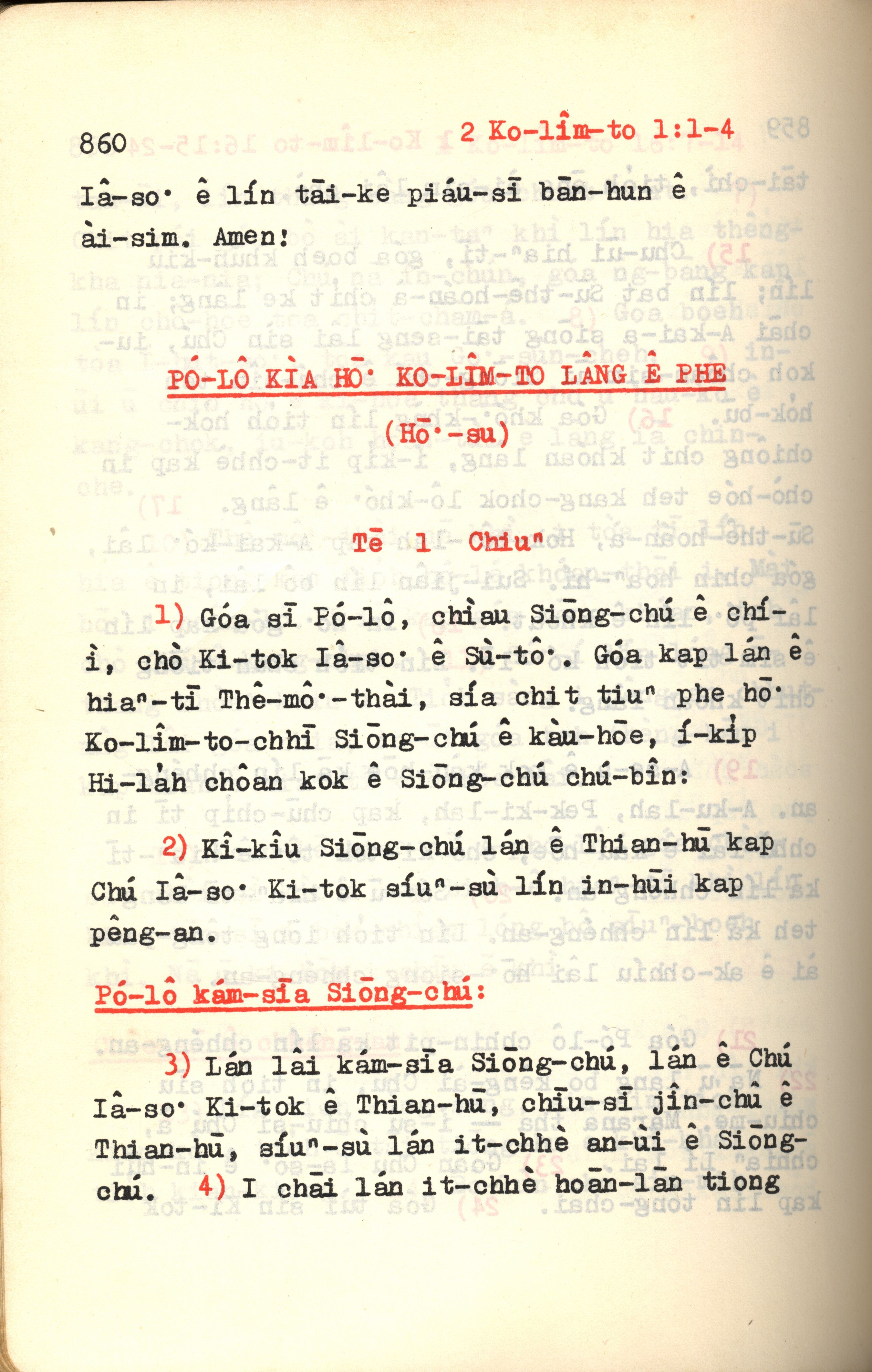 1972年新約紅皮聖經 哥林多後書 1 章 1 節到 1 章 4 節