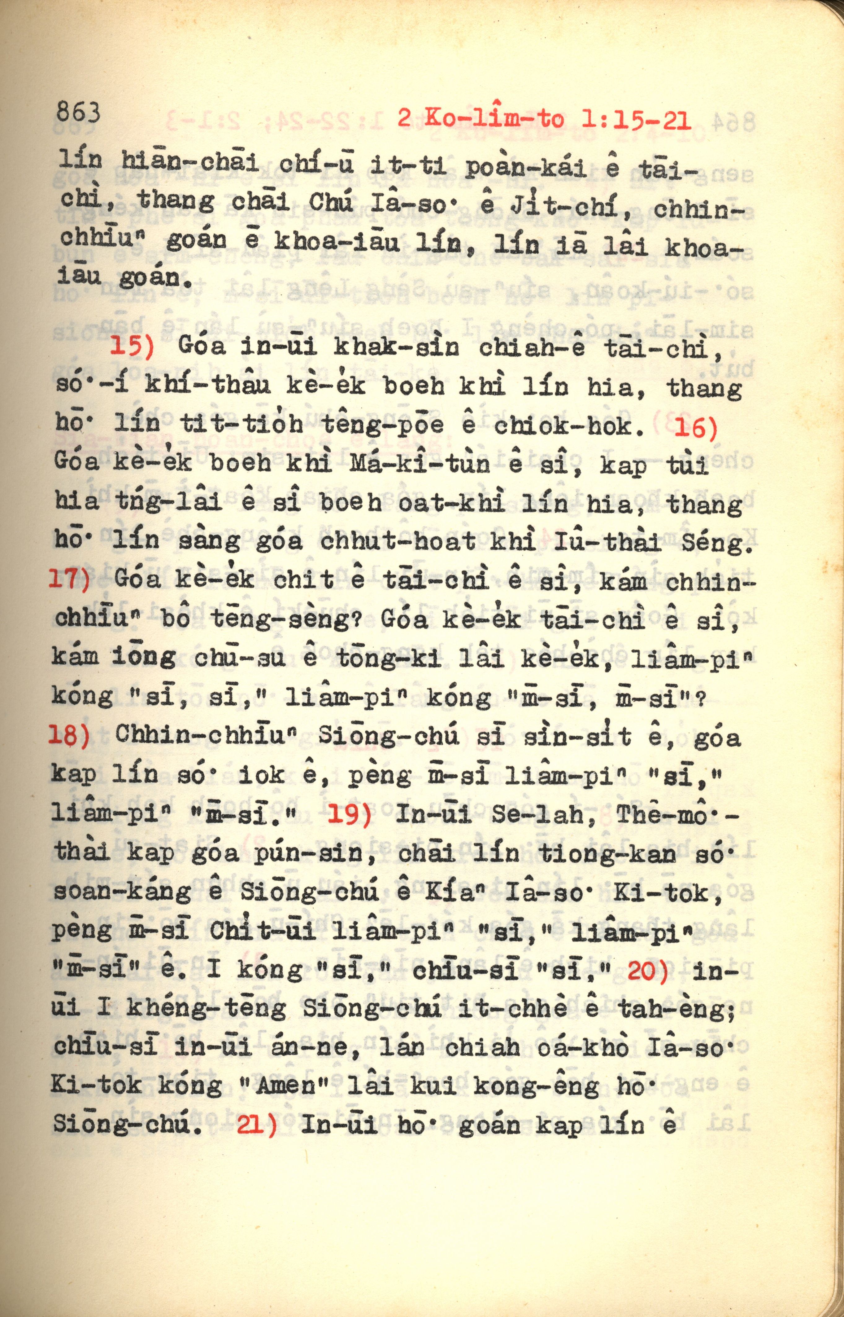 1972年新約紅皮聖經 哥林多後書 1 章 15 節到 1 章 21 節