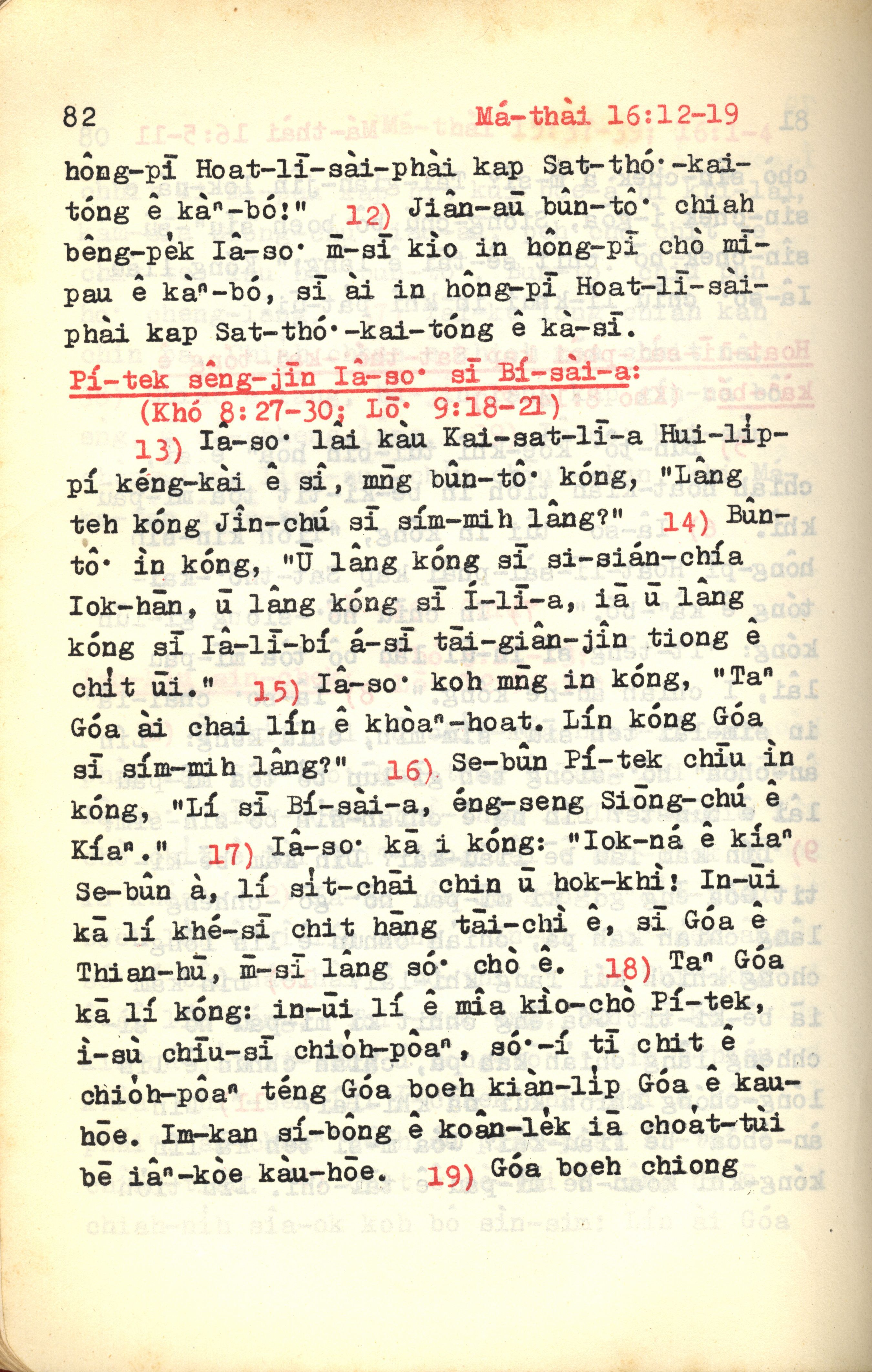 1972年新約紅皮聖經 馬太福音 16 章 12 節到 16 章 19 節