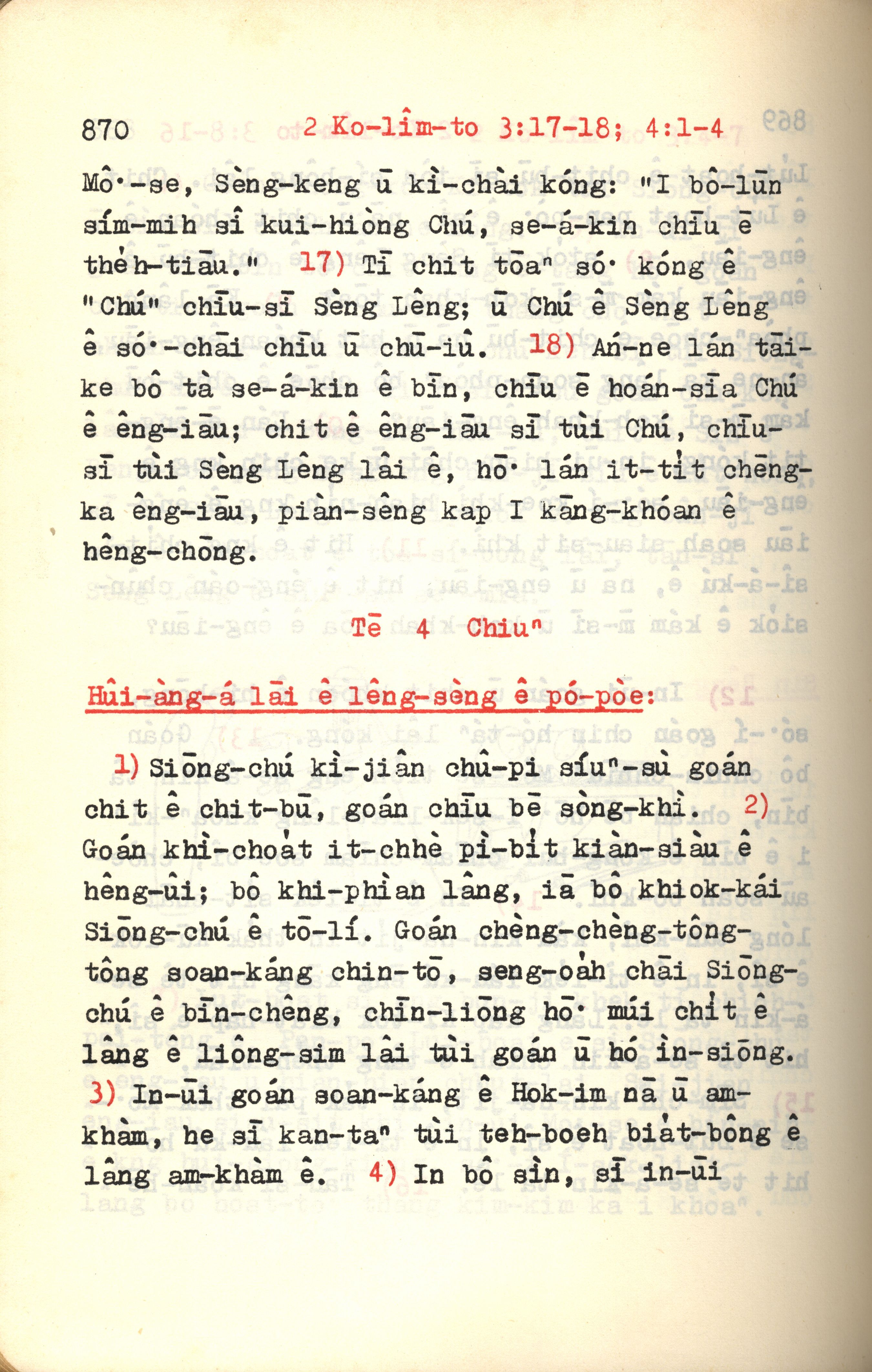 1972年新約紅皮聖經 哥林多後書 3 章 17 節到 4 章 4 節