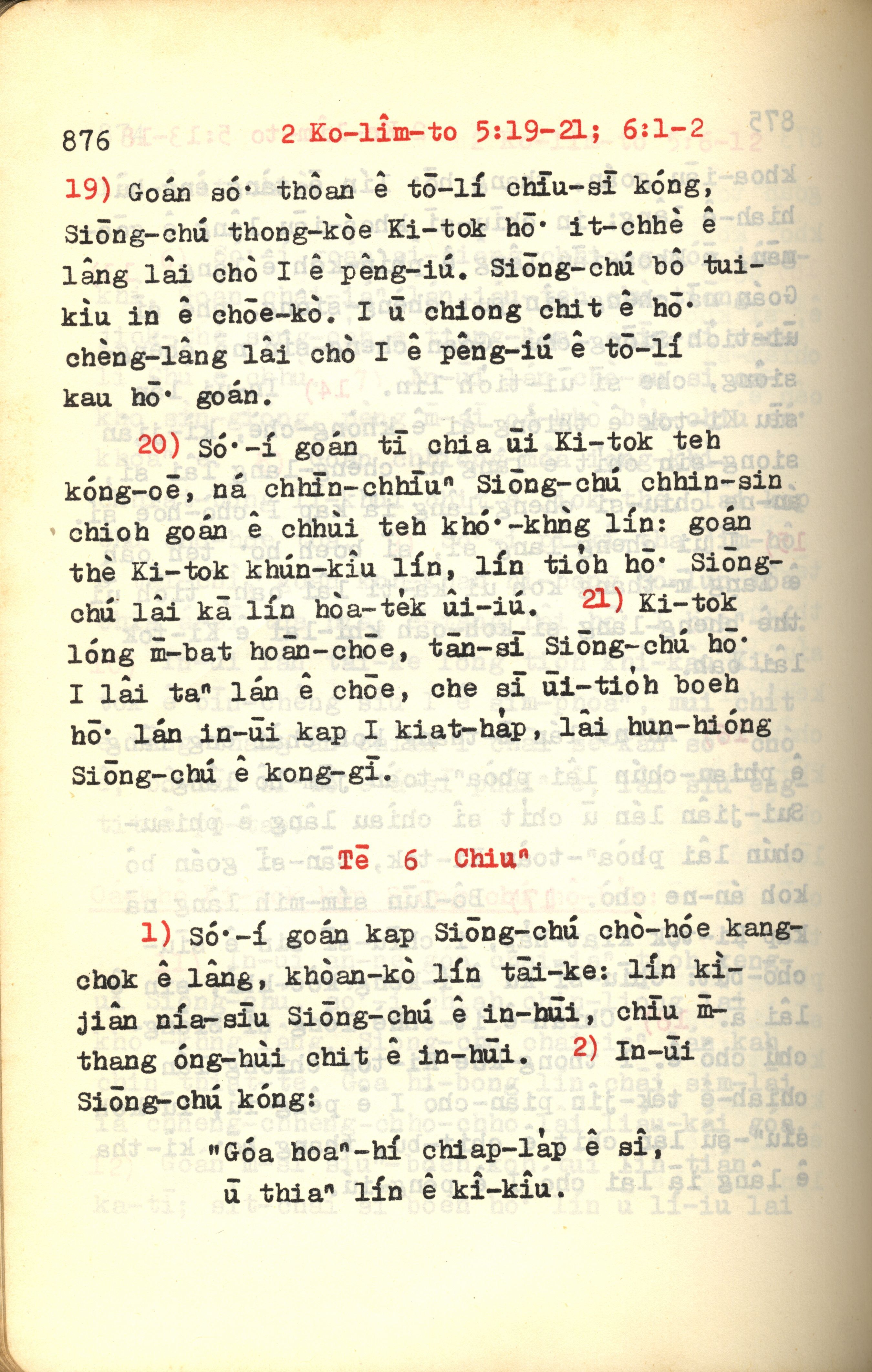 1972年新約紅皮聖經 哥林多後書 5 章 19 節到 6 章 2 節