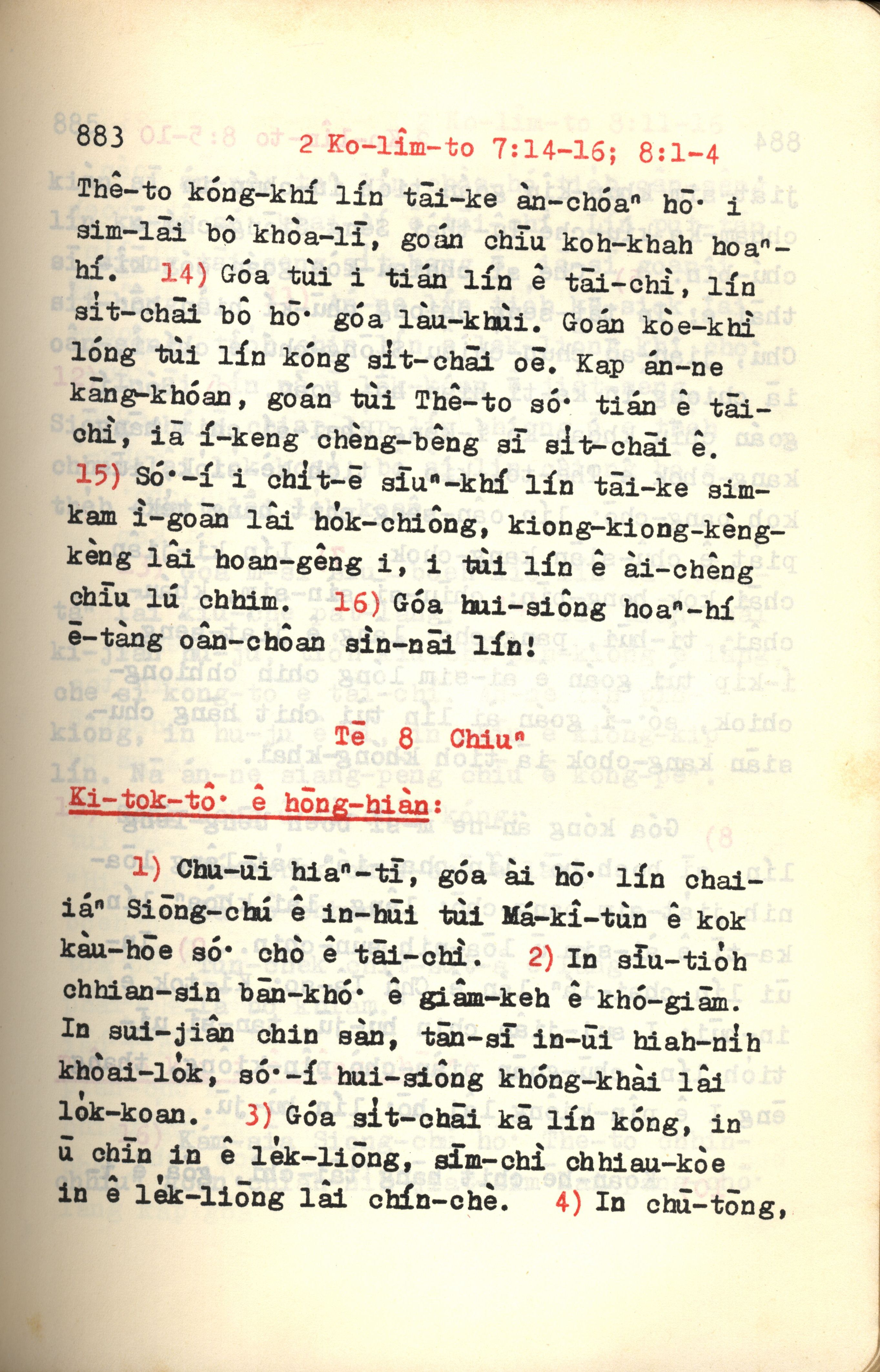 1972年新約紅皮聖經 哥林多後書 7 章 14 節到 8 章 4 節