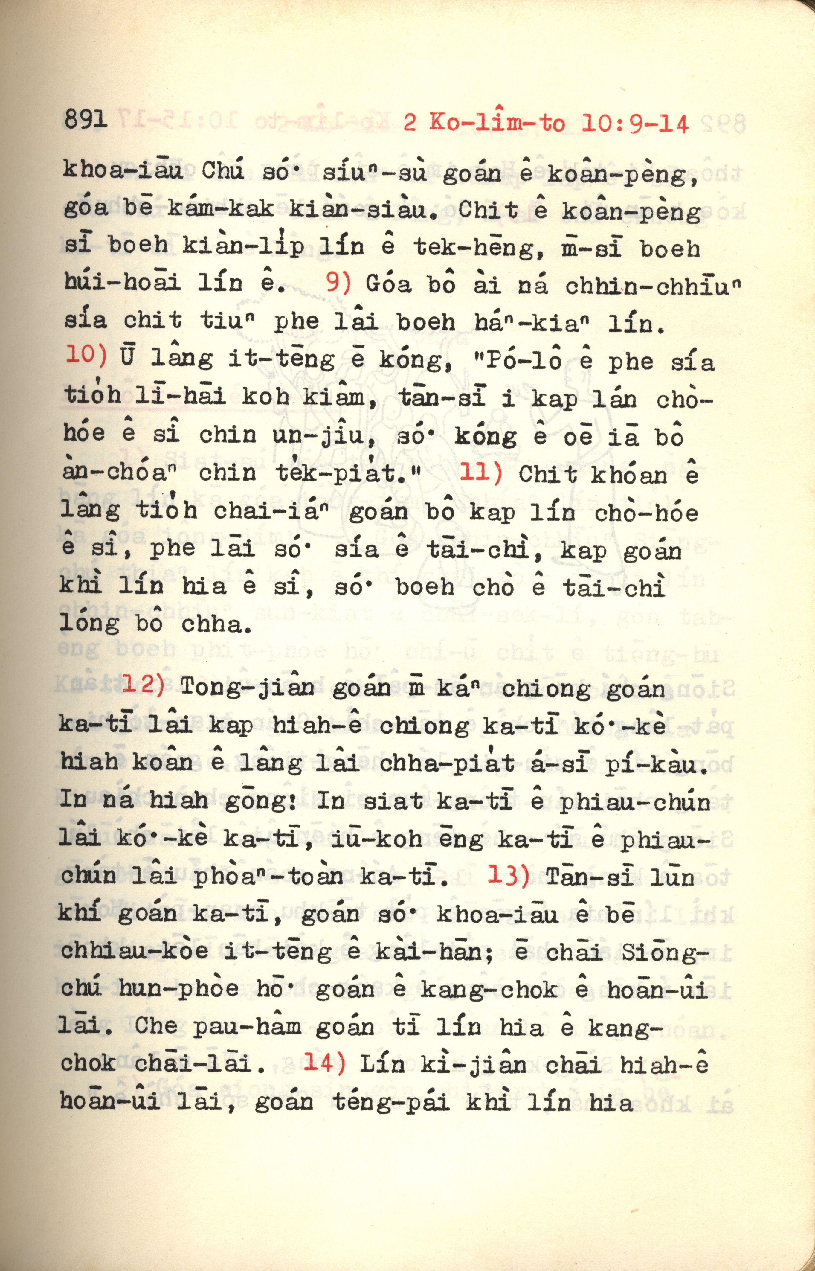 1972年新約紅皮聖經 哥林多後書 10 章 9 節到 10 章 14 節