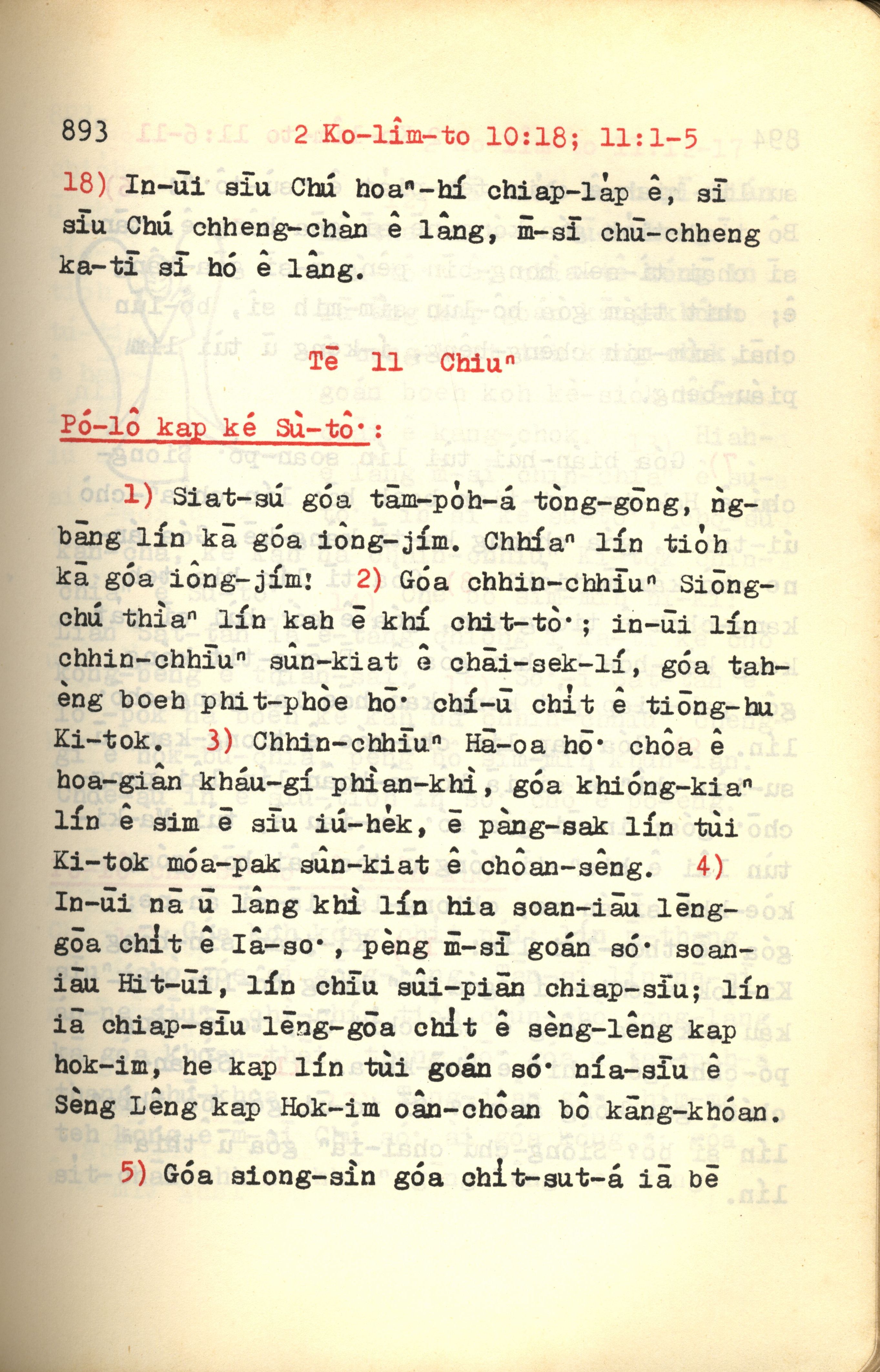 1972年新約紅皮聖經 哥林多後書 10 章 18 節到 11 章 5 節