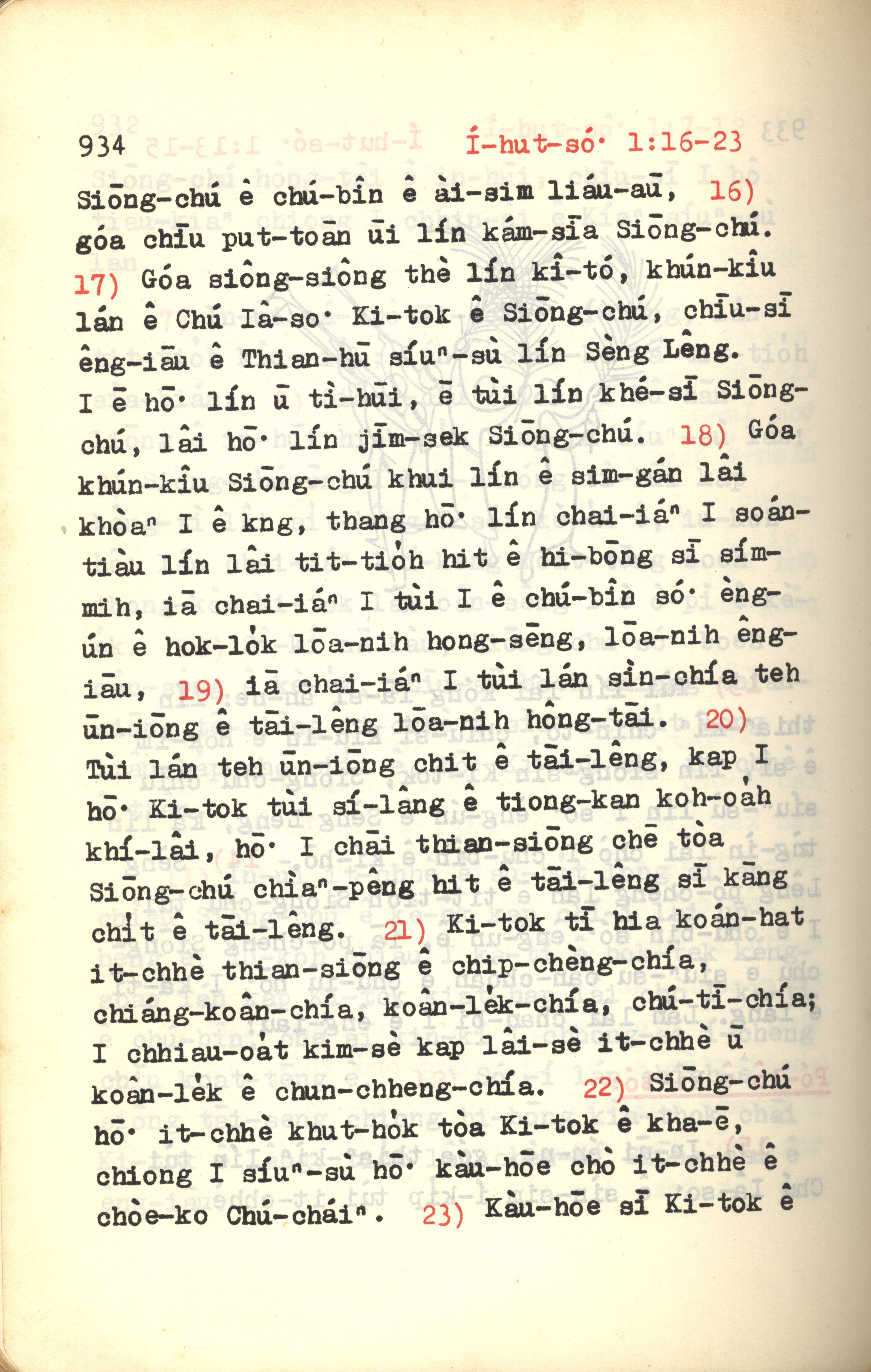 1972年新約紅皮聖經 以弗所書 1 章 16 節到 1 章 23 節