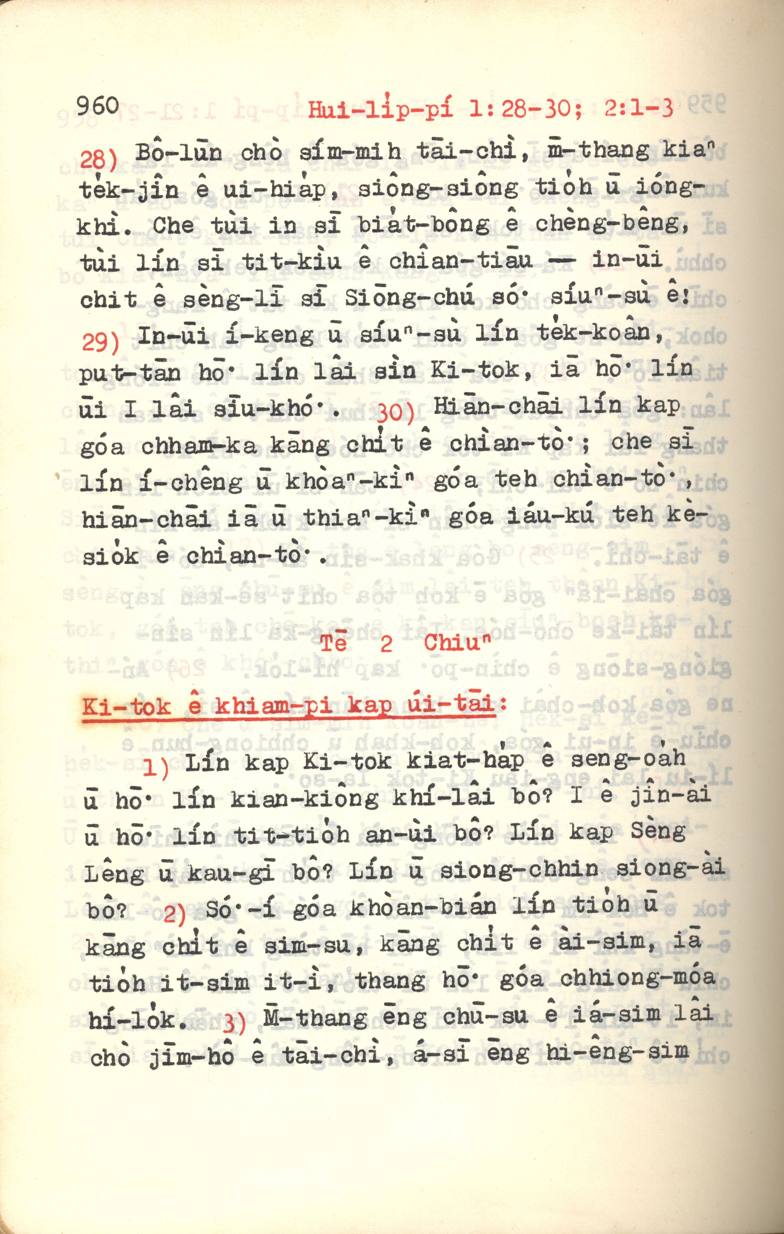 1972年新約紅皮聖經 腓立比書 1 章 28 節到 2 章 3 節