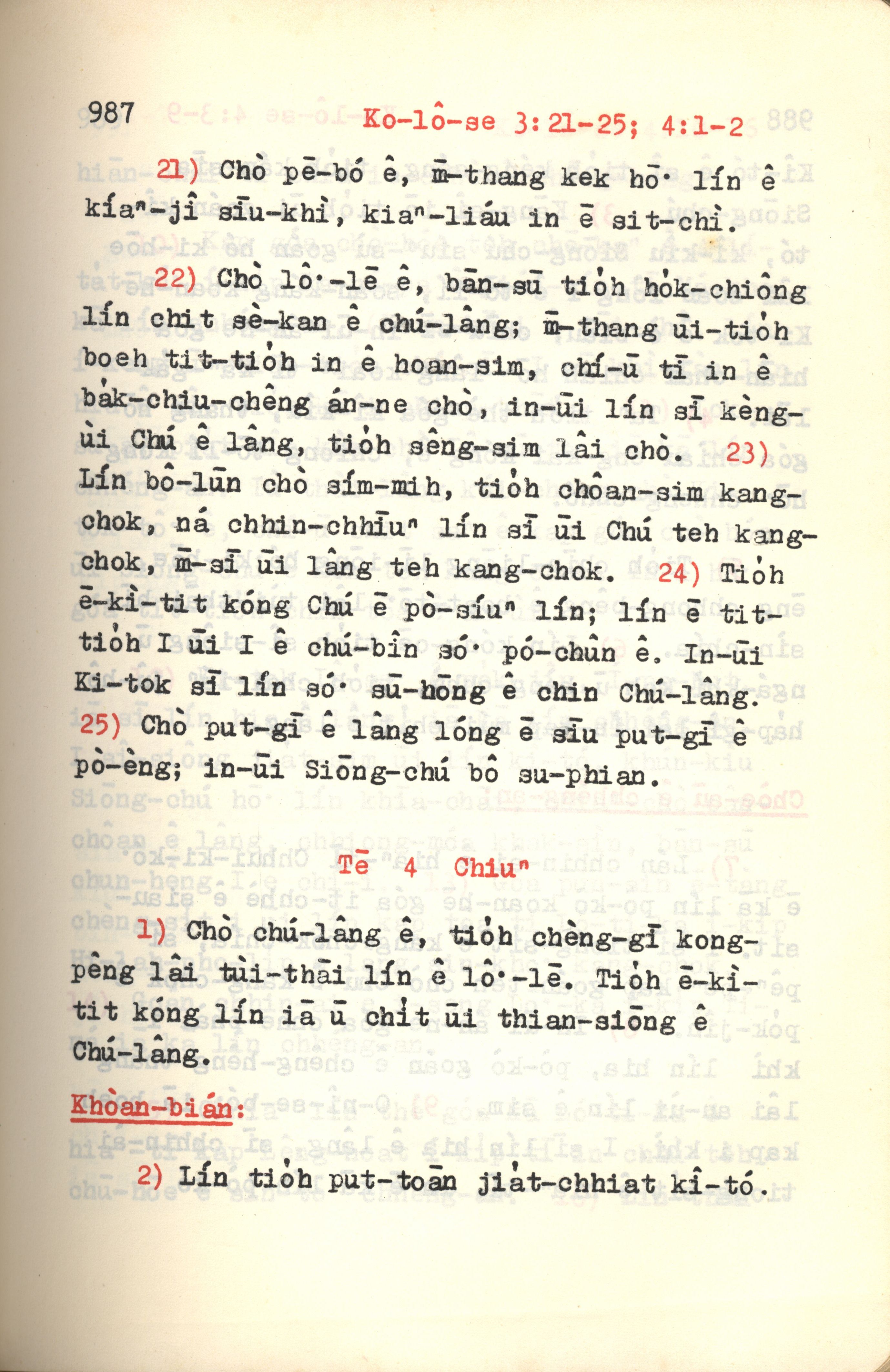 1972年新約紅皮聖經 歌羅西書 3 章 21 節到 4 章 2 節
