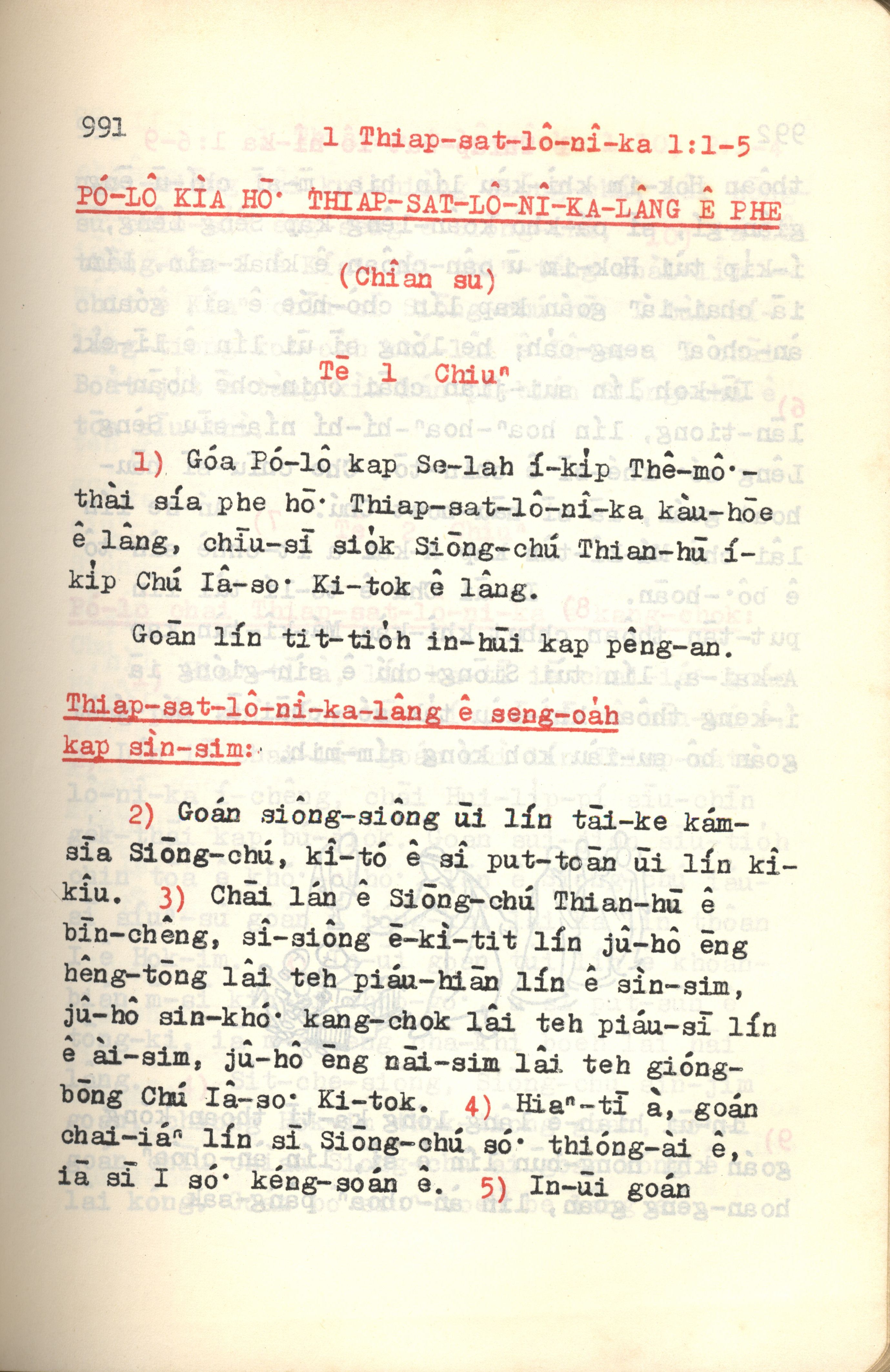 1972年新約紅皮聖經 帖撒羅尼迦前書 1 章 1 節到 1 章 5 節