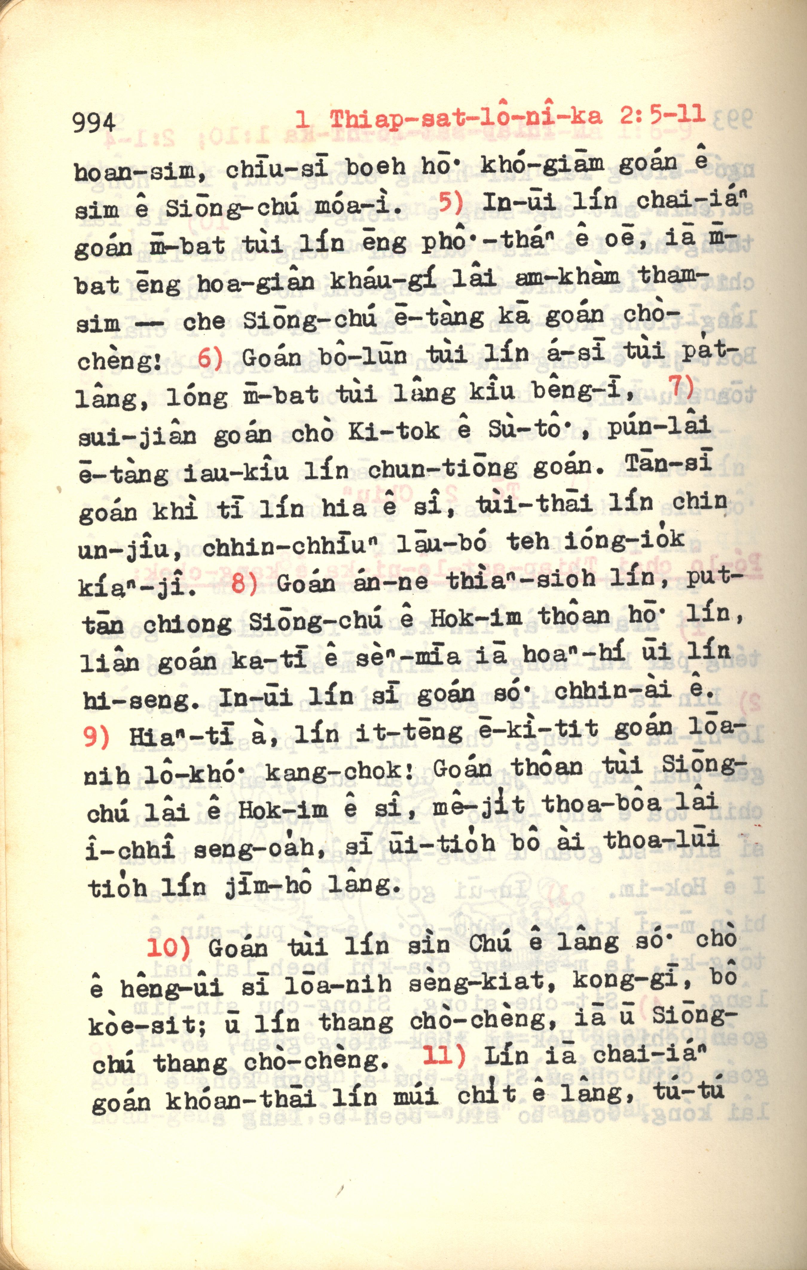 1972年新約紅皮聖經 帖撒羅尼迦前書 2 章 5 節到 2 章 11 節