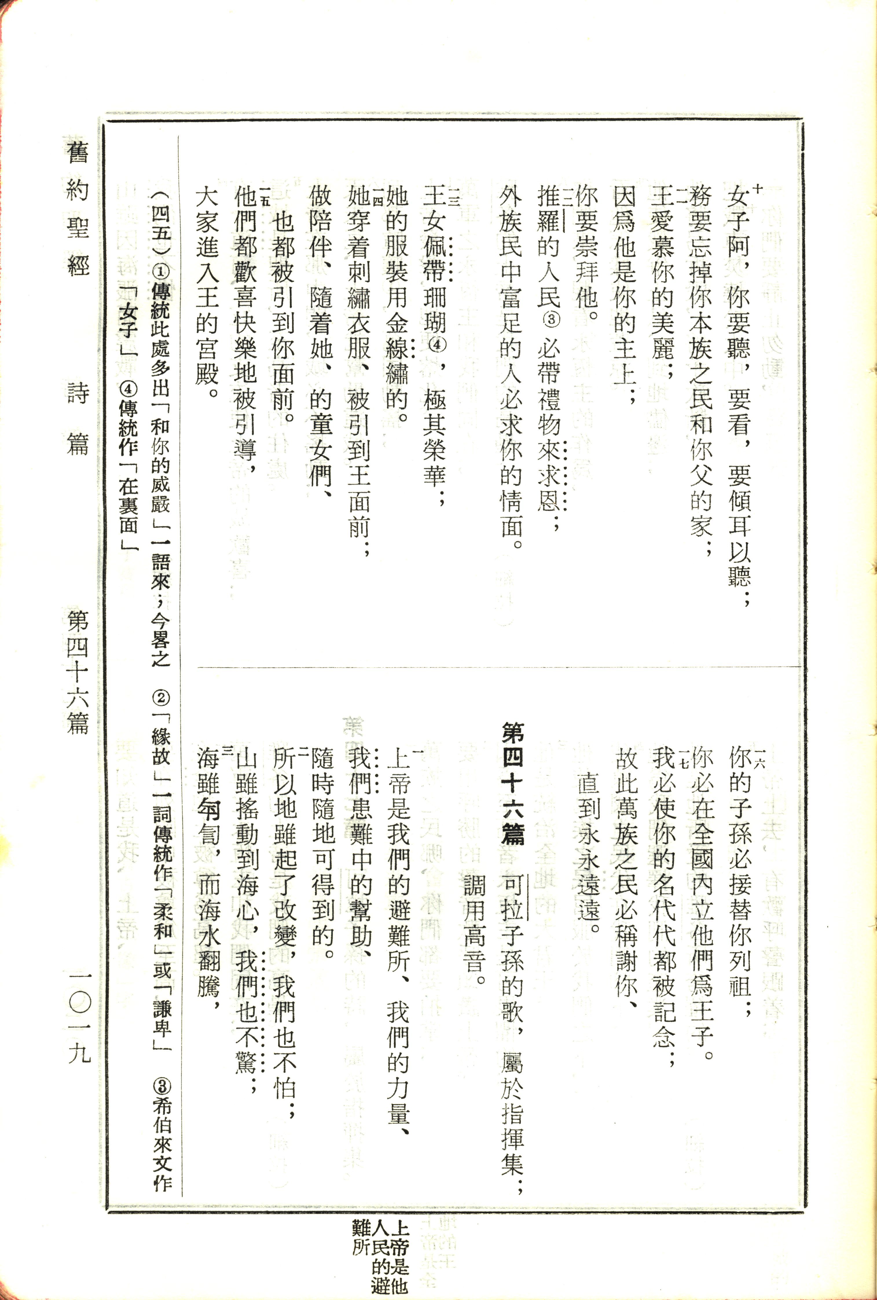 1970年新舊約全書(呂振中譯本) 詩篇 45 章 10 節到 46 章 3 節