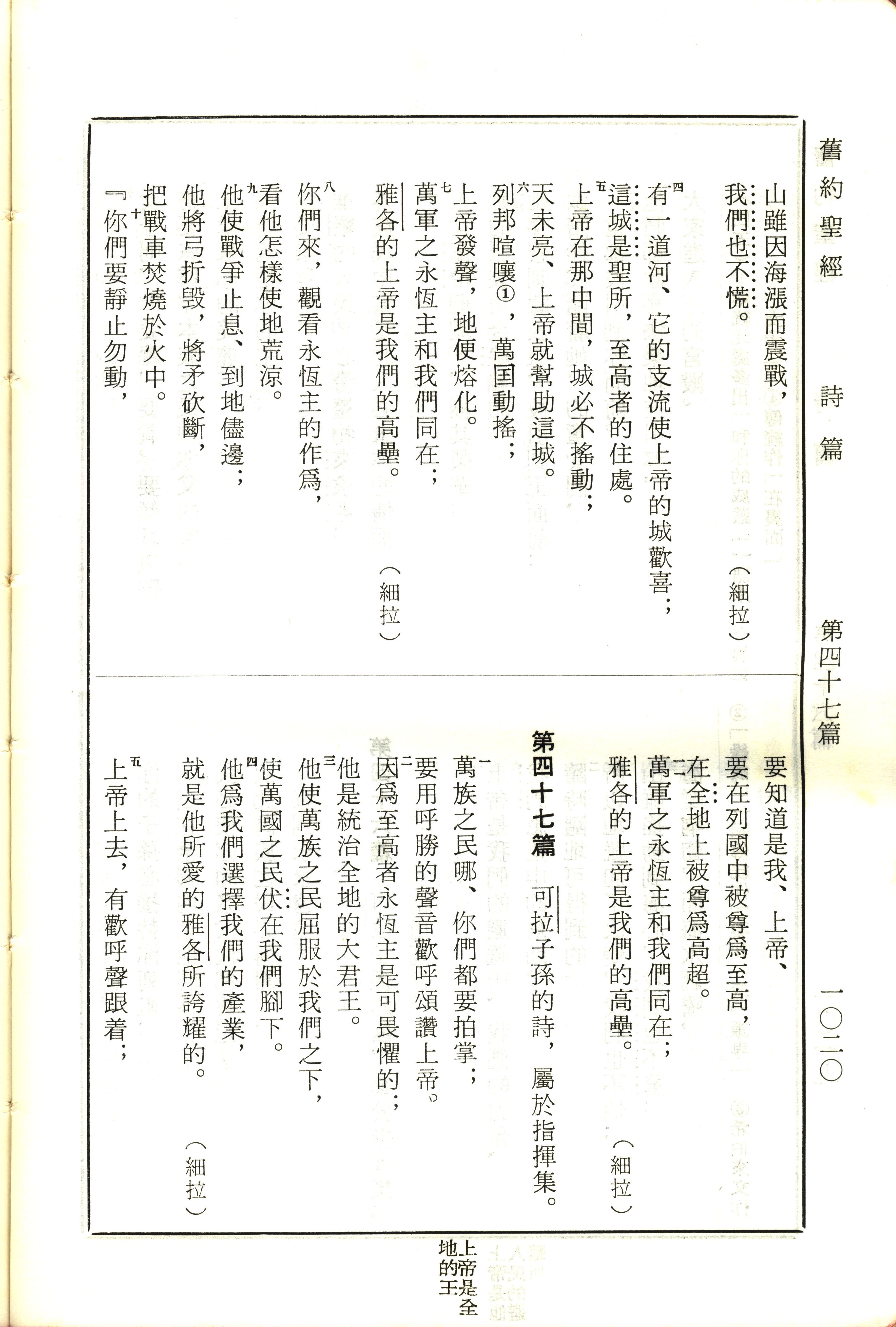 1970年新舊約全書(呂振中譯本) 詩篇 46 章 4 節到 47 章 5 節