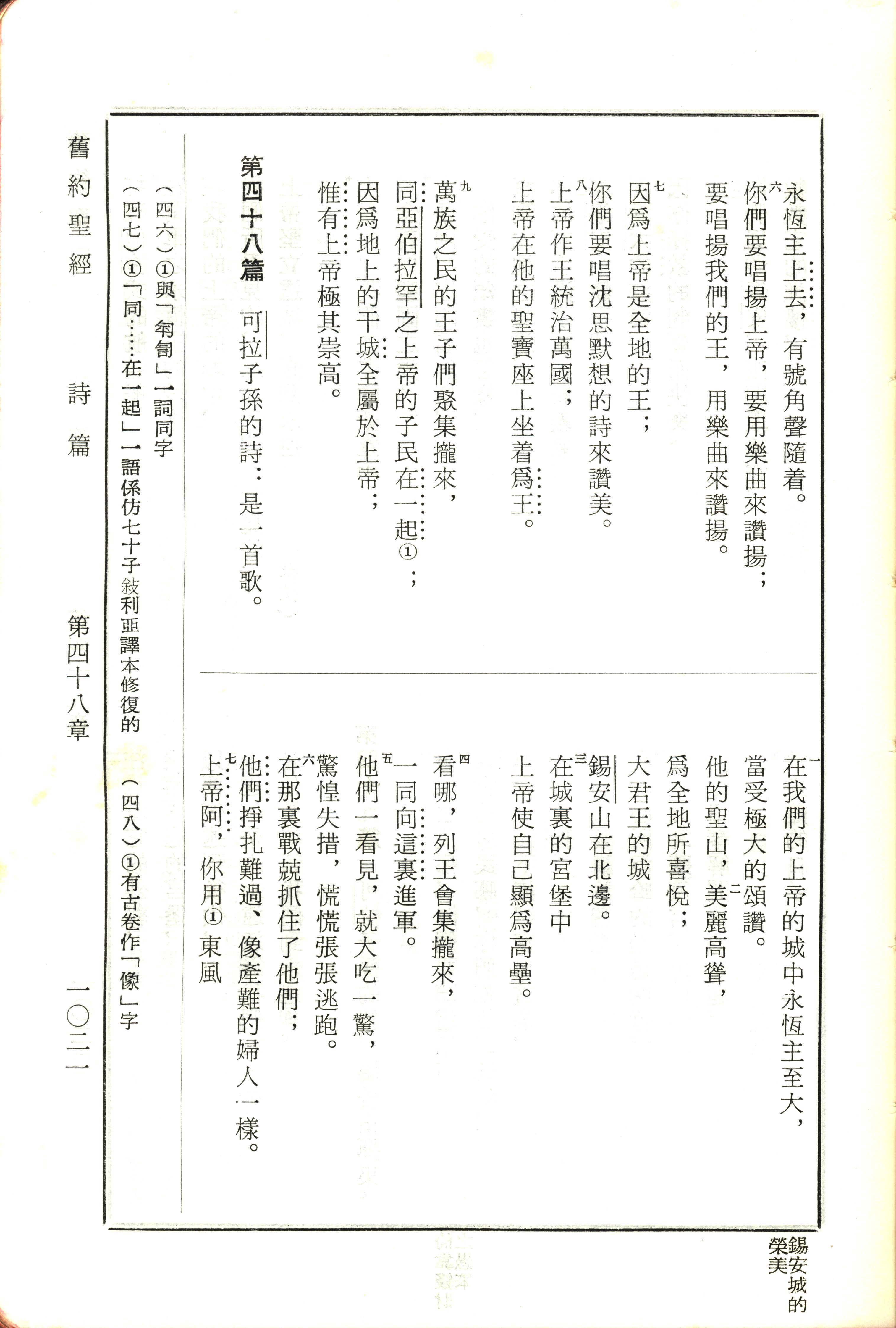1970年新舊約全書(呂振中譯本) 詩篇 47 章 6 節到 48 章 7 節