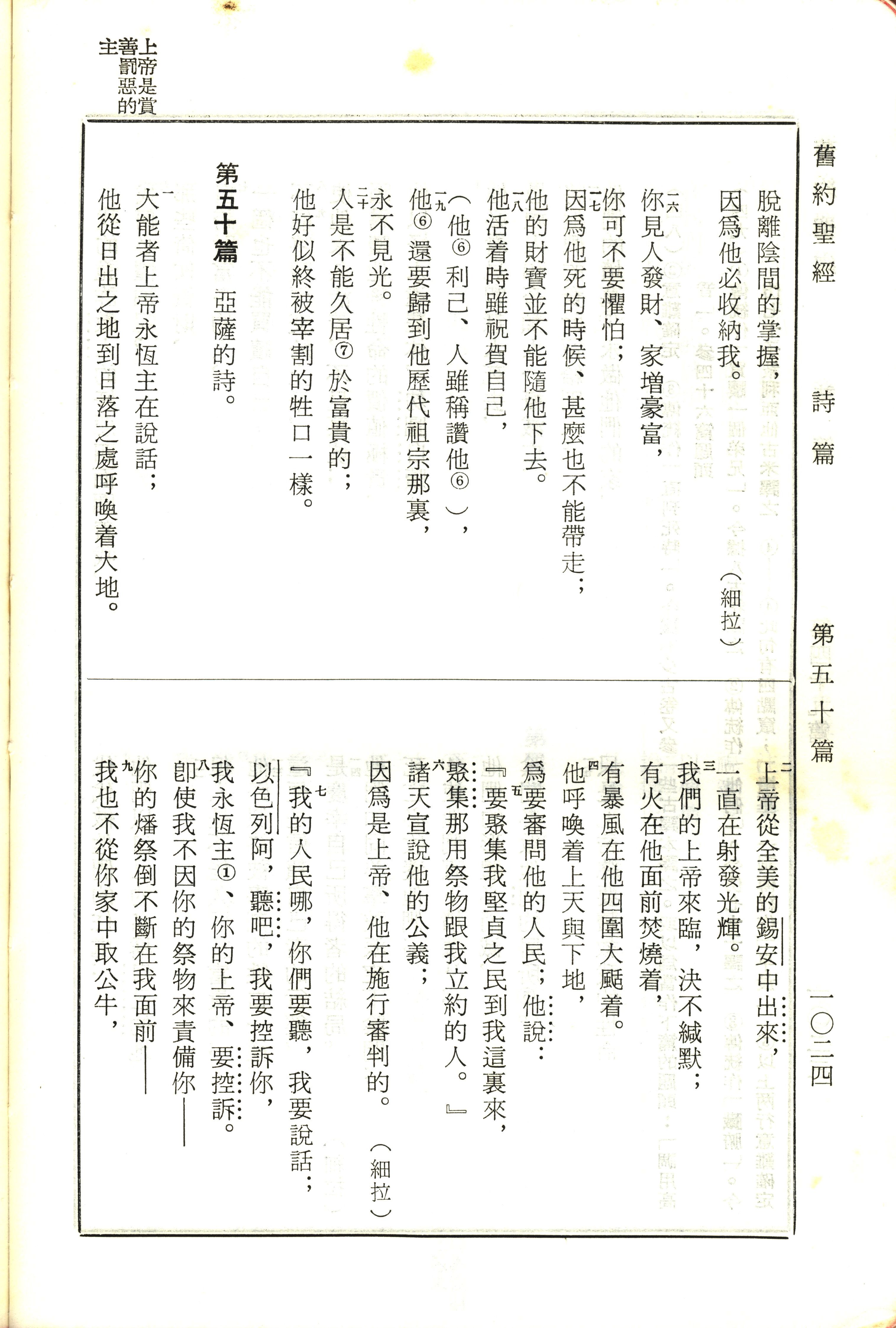 1970年新舊約全書(呂振中譯本) 詩篇 49 章 16 節到 50 章 9 節