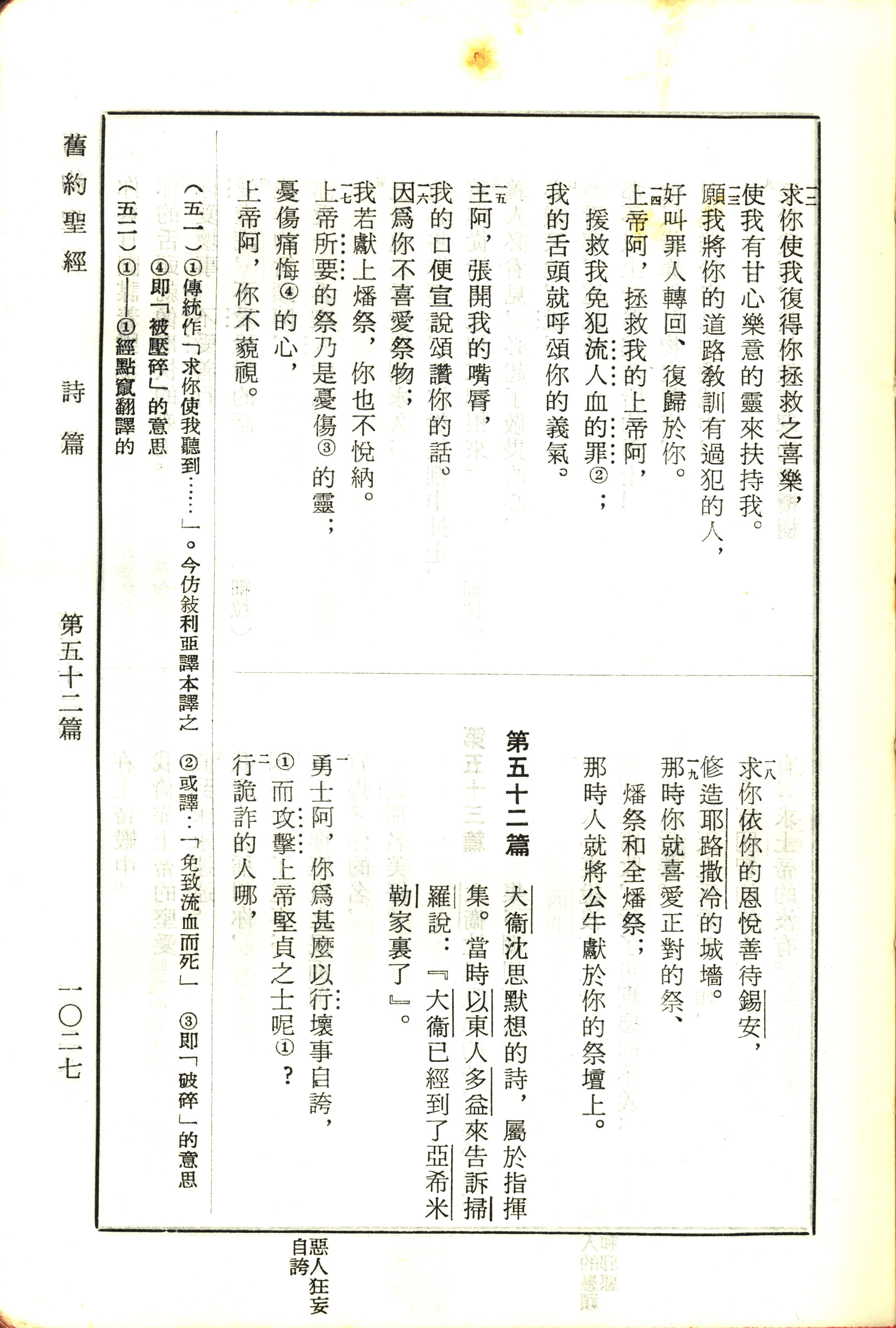 1970年新舊約全書(呂振中譯本) 詩篇 51 章 12 節到 52 章 2 節