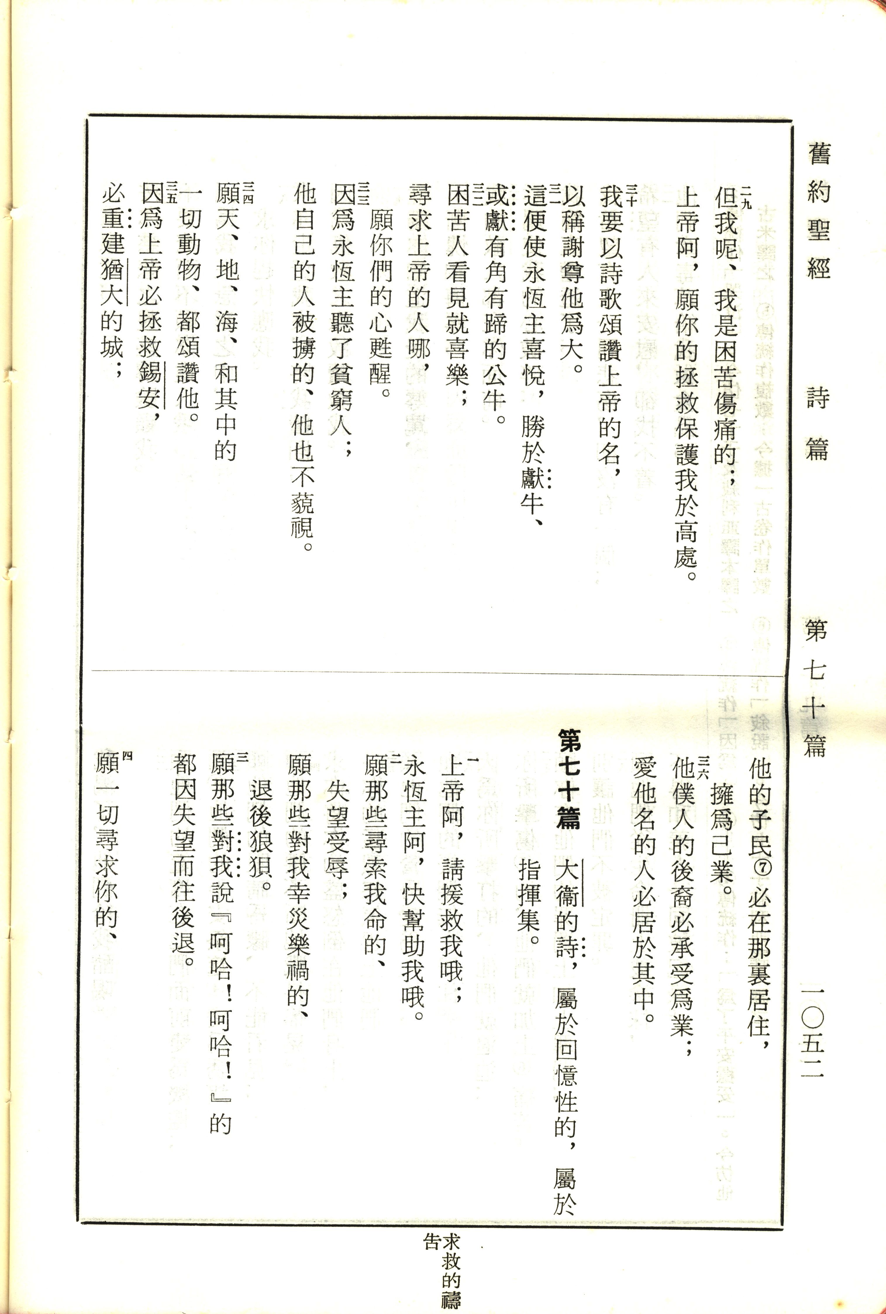 1970年新舊約全書(呂振中譯本) 詩篇 69 章 29 節到 70 章 4 節