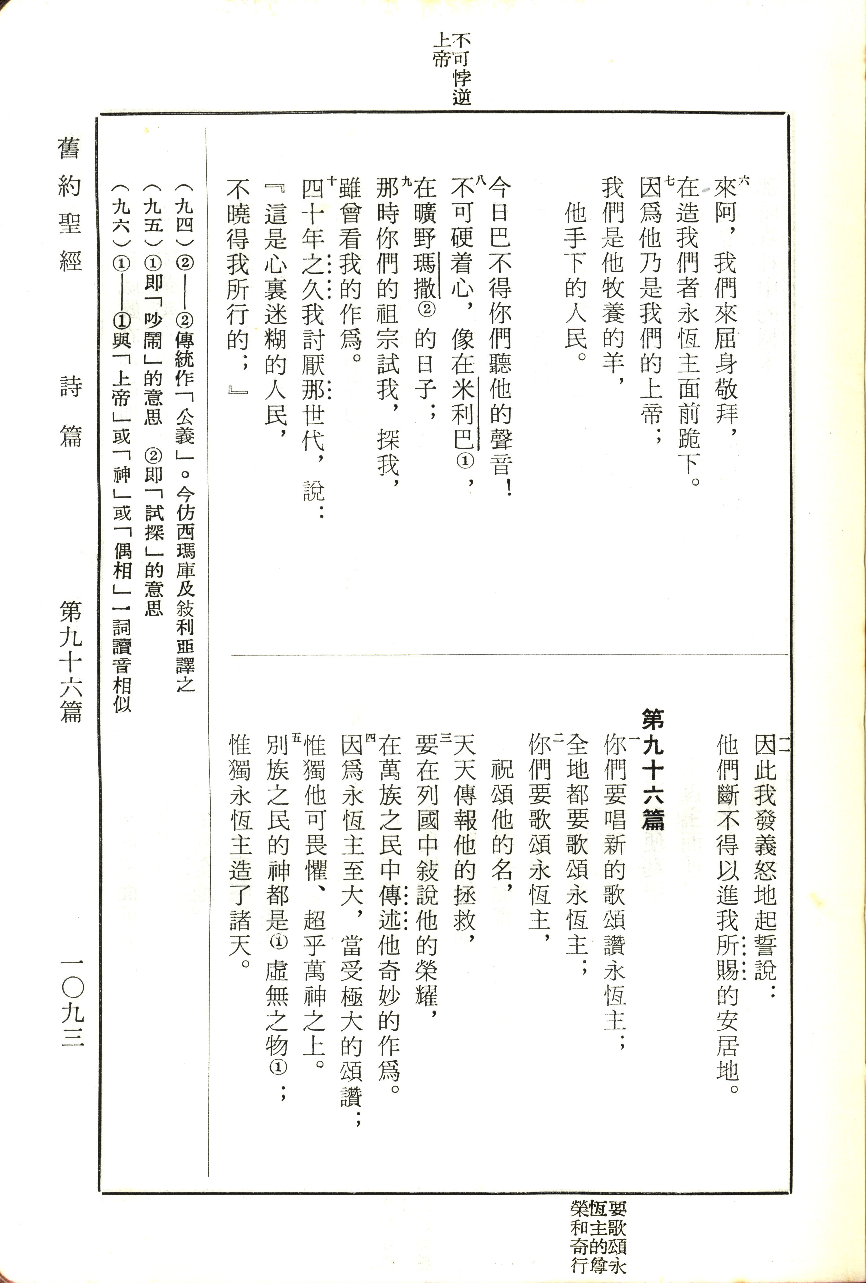 1970年新舊約全書(呂振中譯本) 詩篇 95 章 6 節到 96 章 5 節