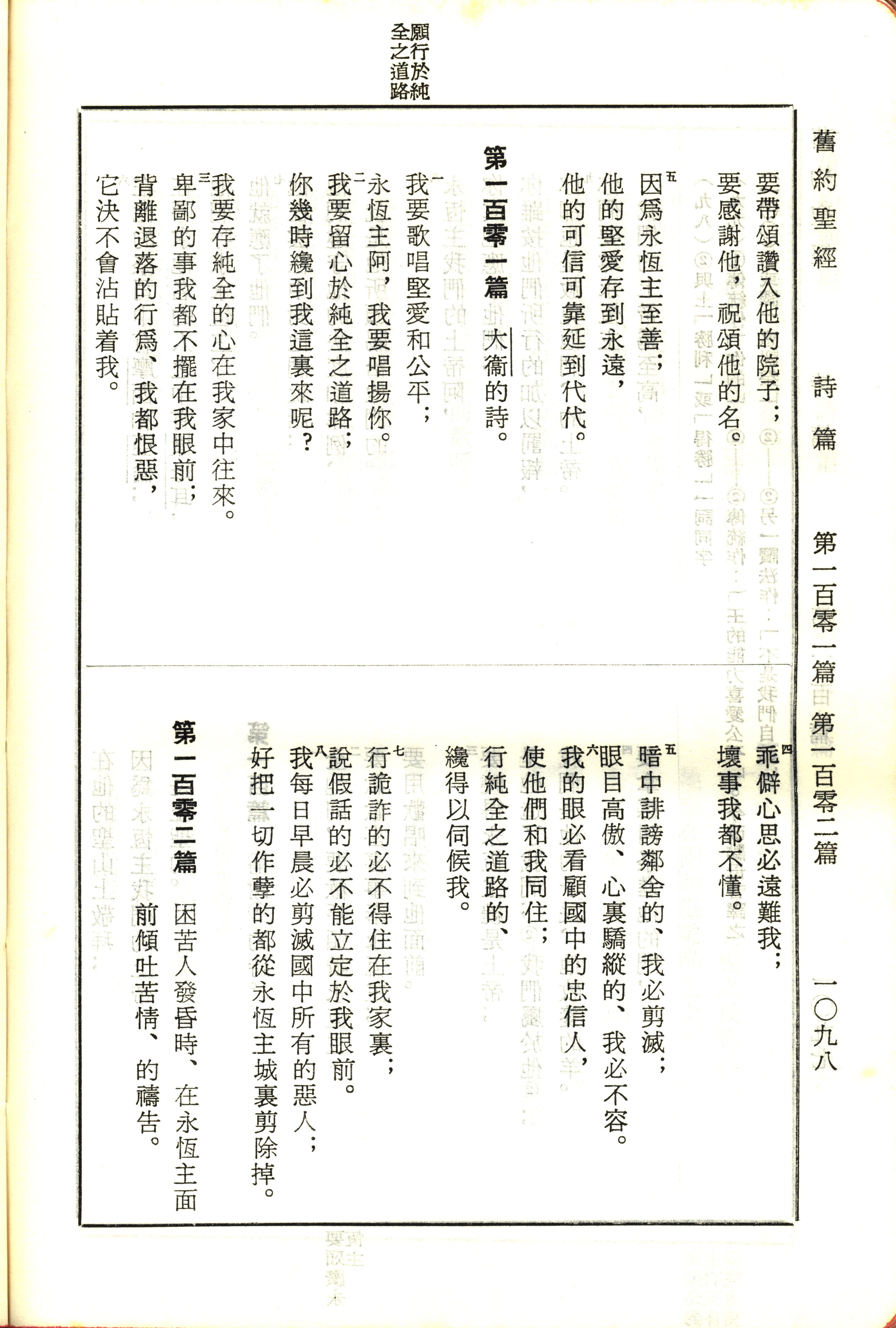 1970年新舊約全書(呂振中譯本) 詩篇 100 章 5 節到 101 章 8 節
