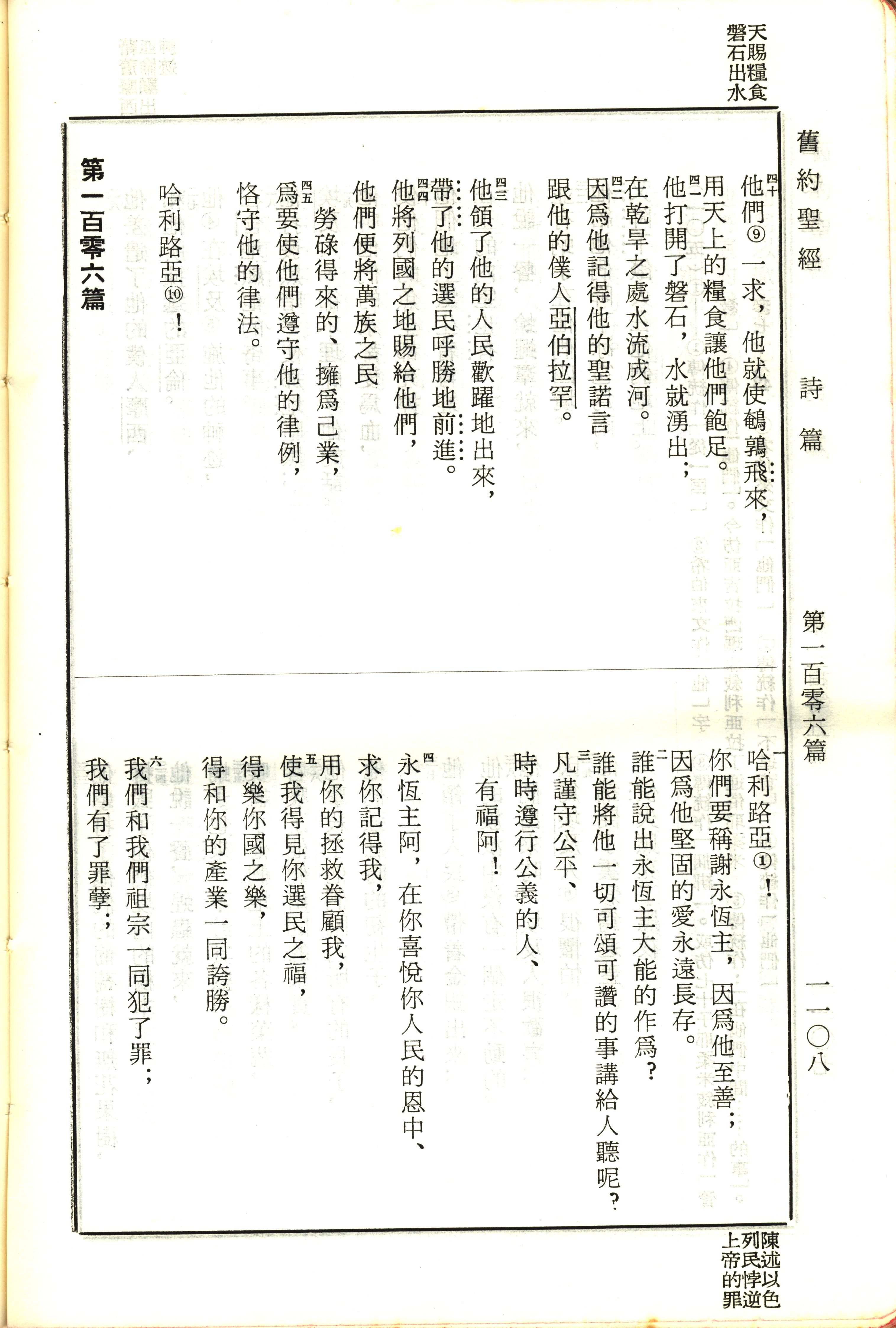 1970年新舊約全書(呂振中譯本) 詩篇 105 章 40 節到 106 章 6 節