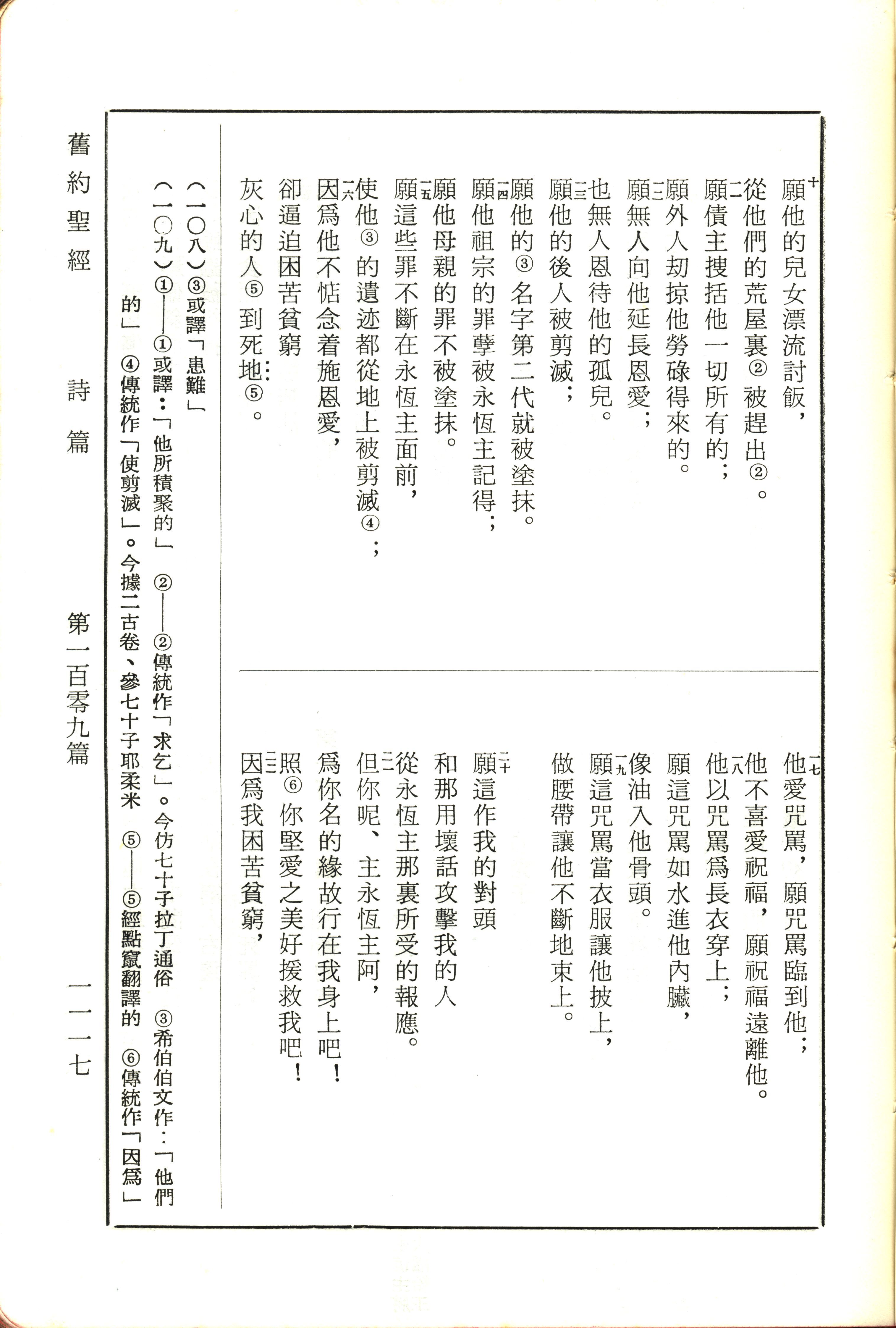 1970年新舊約全書(呂振中譯本) 詩篇 109 章 10 節到 109 章 22 節