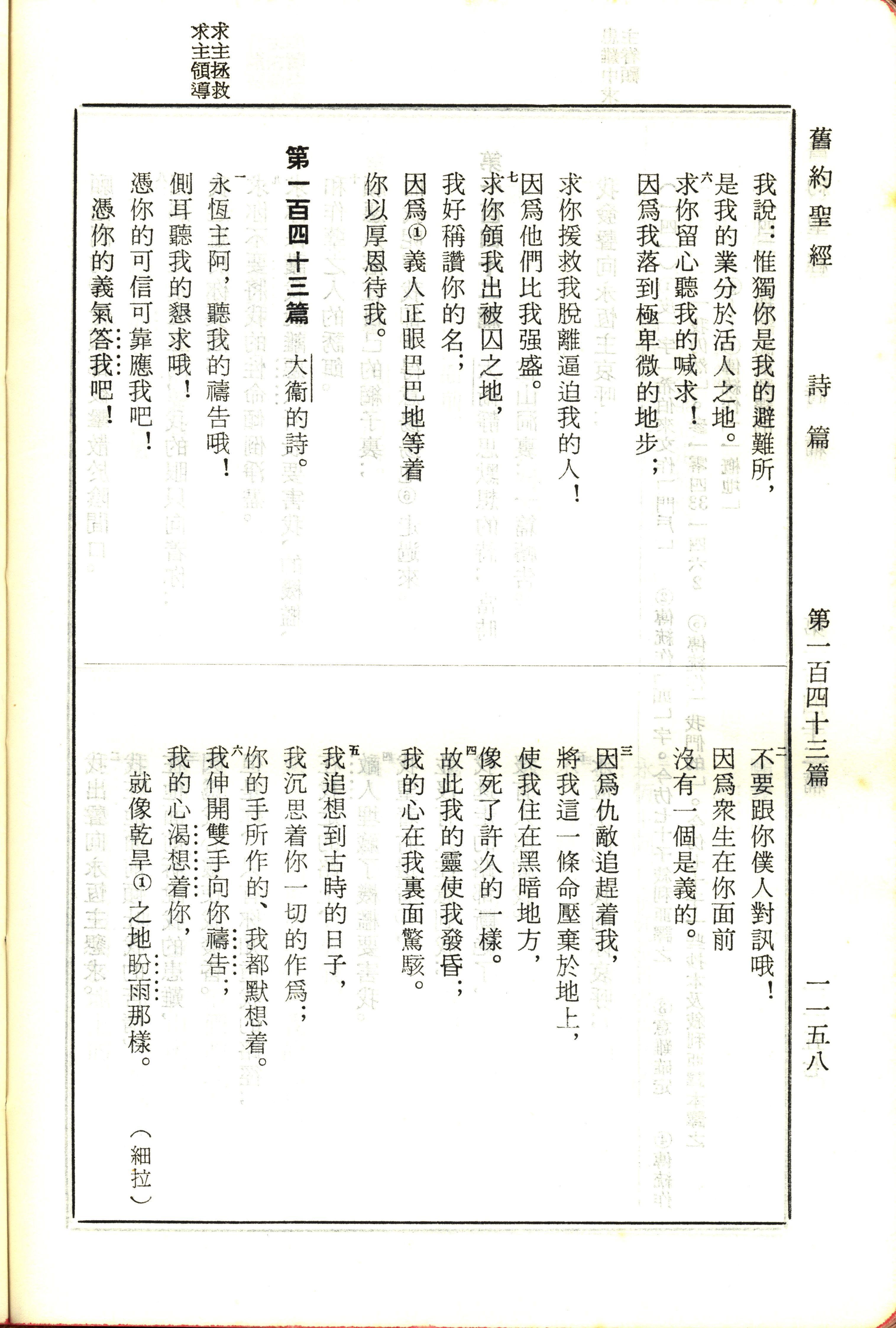 1970年新舊約全書(呂振中譯本) 詩篇 142 章 6 節到 143 章 6 節