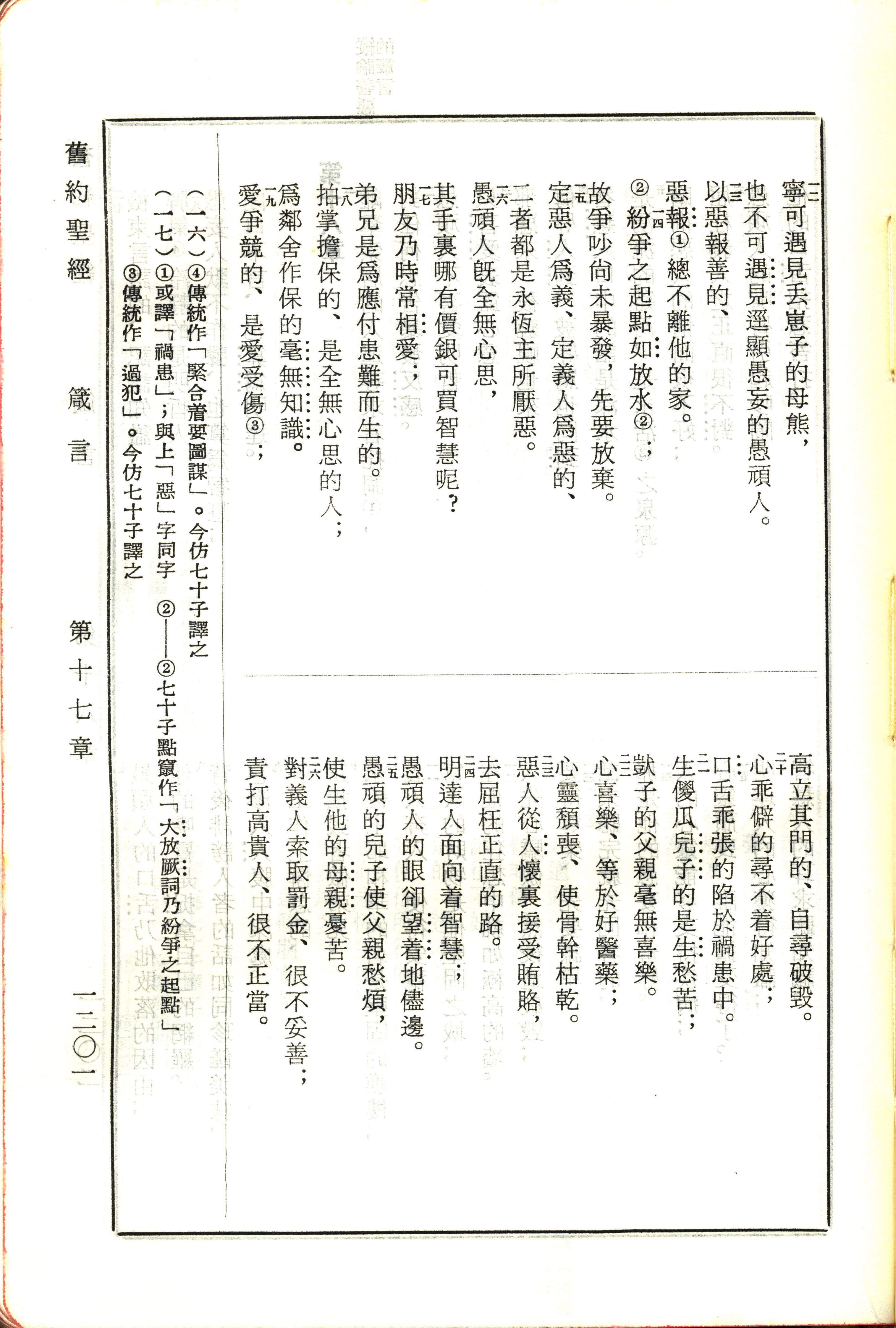 1970年新舊約全書(呂振中譯本) 箴言 17 章 12 節到 17 章 26 節