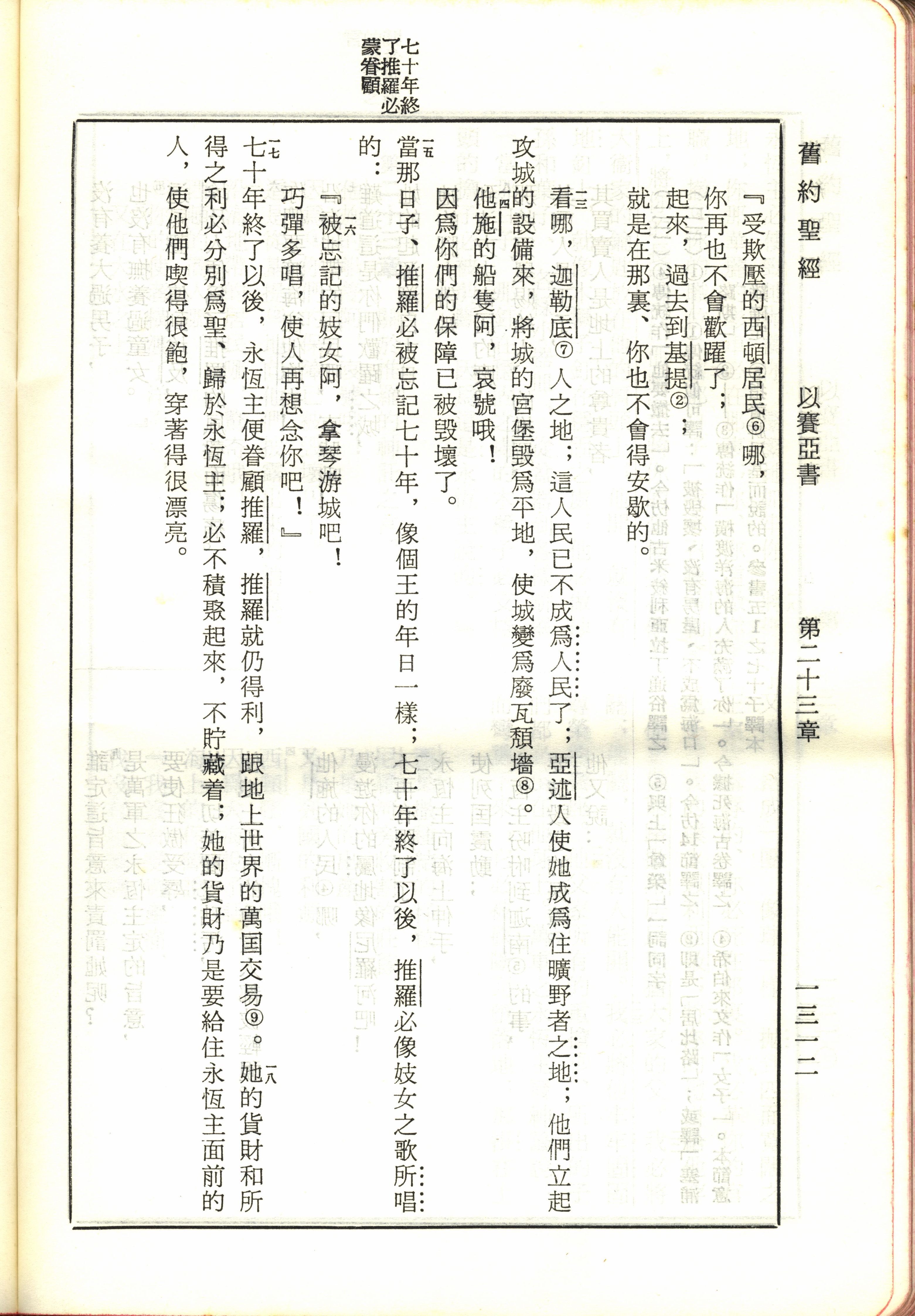 1970年新舊約全書(呂振中譯本) 以賽亞書 23 章 13 節到 23 章 18 節