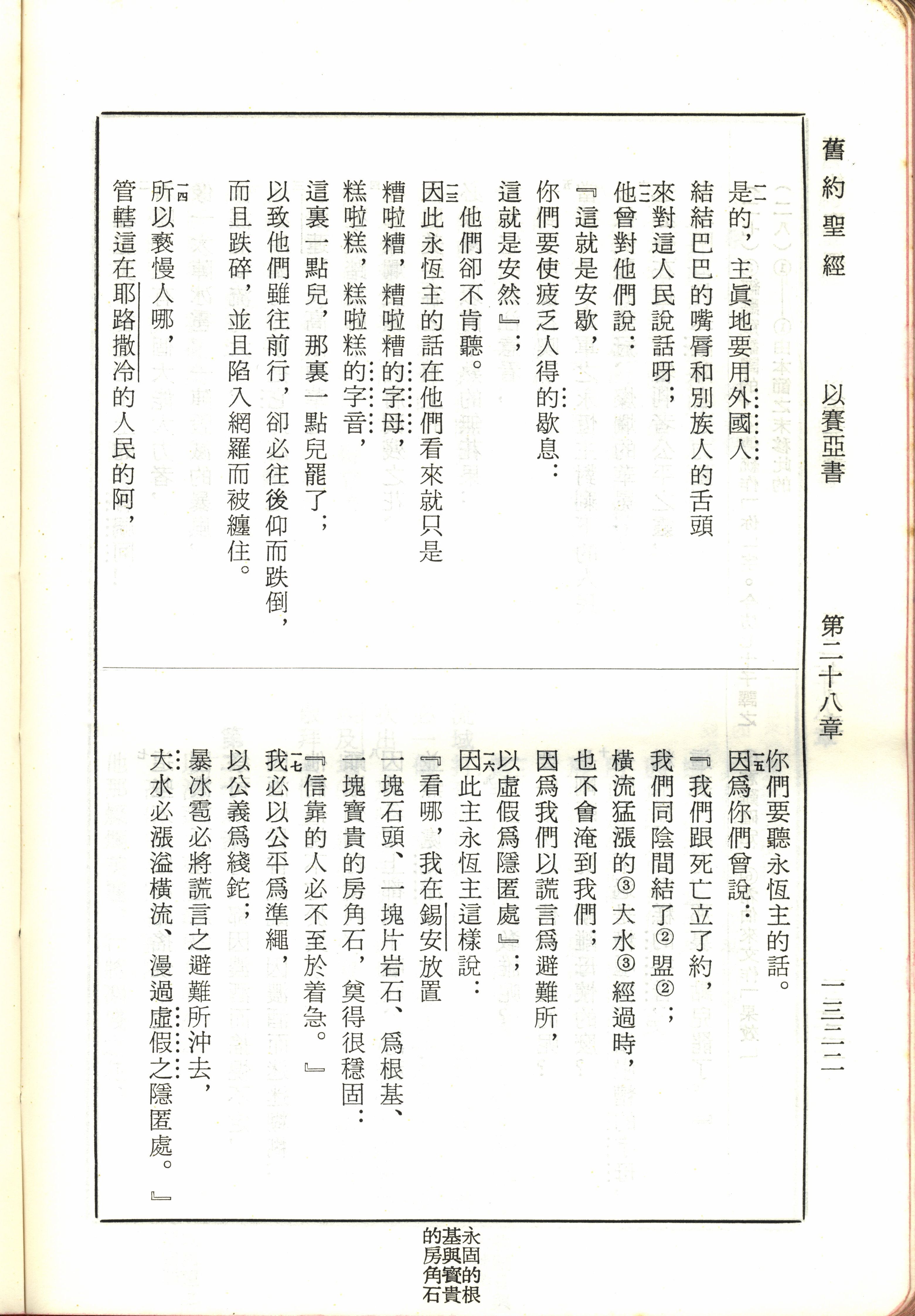 1970年新舊約全書(呂振中譯本) 以賽亞書 28 章 11 節到 28 章 17 節