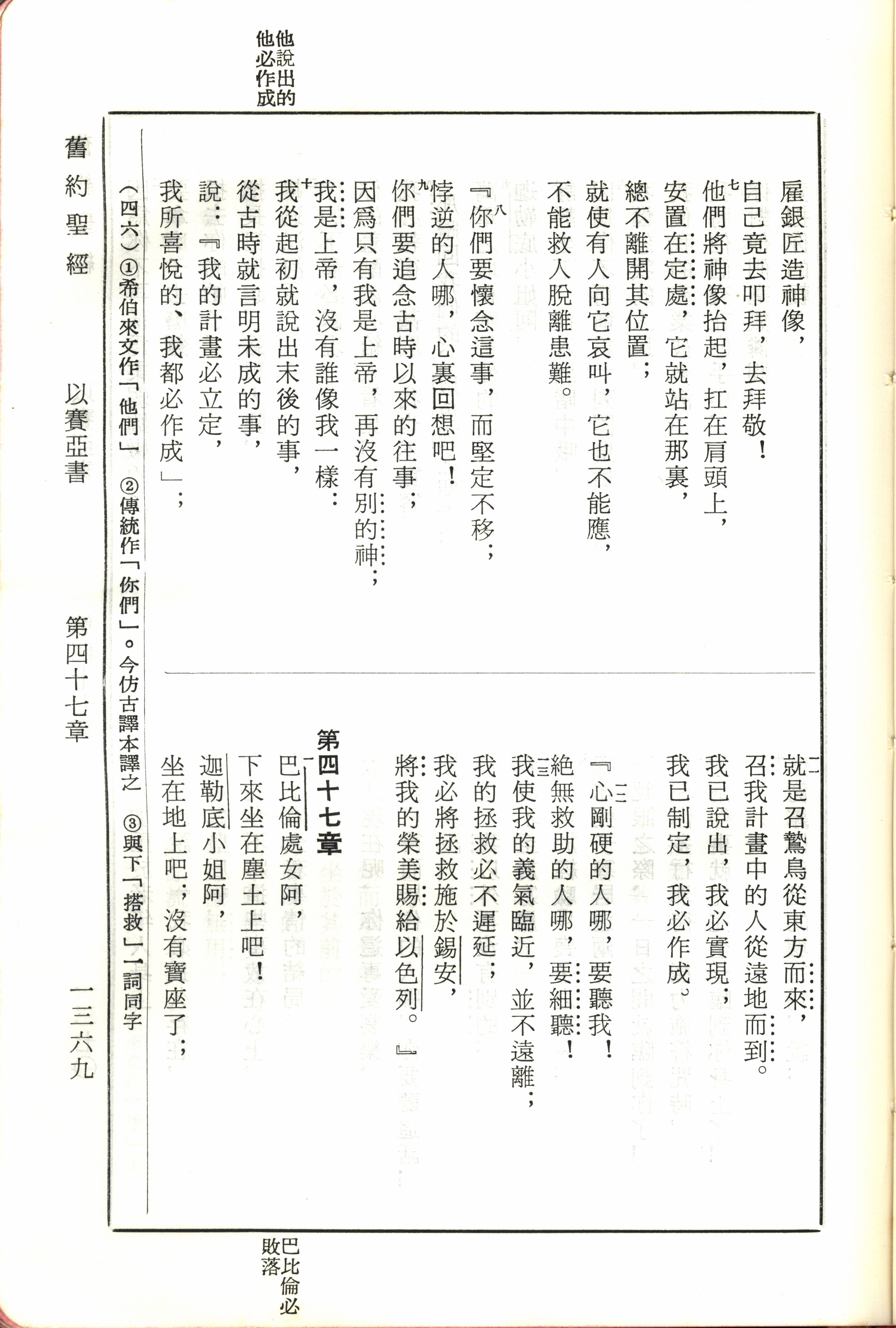 1970年新舊約全書(呂振中譯本) 以賽亞書 46 章 7 節到 47 章 1 節