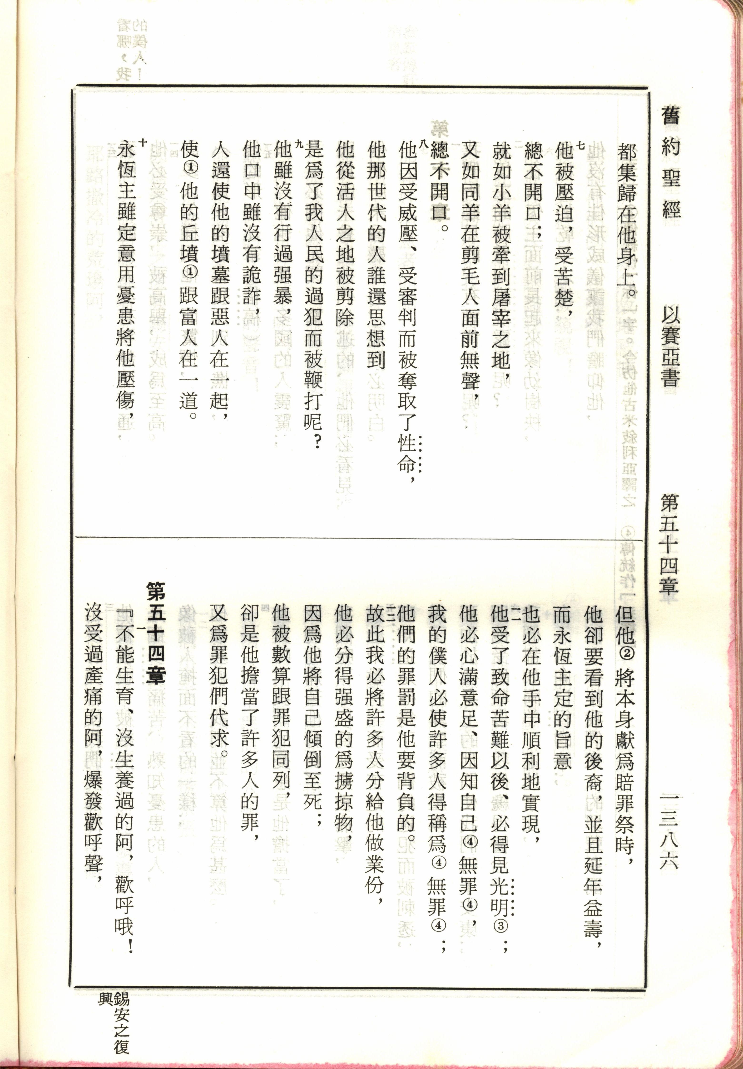 1970年新舊約全書(呂振中譯本) 以賽亞書 53 章 7 節到 54 章 1 節