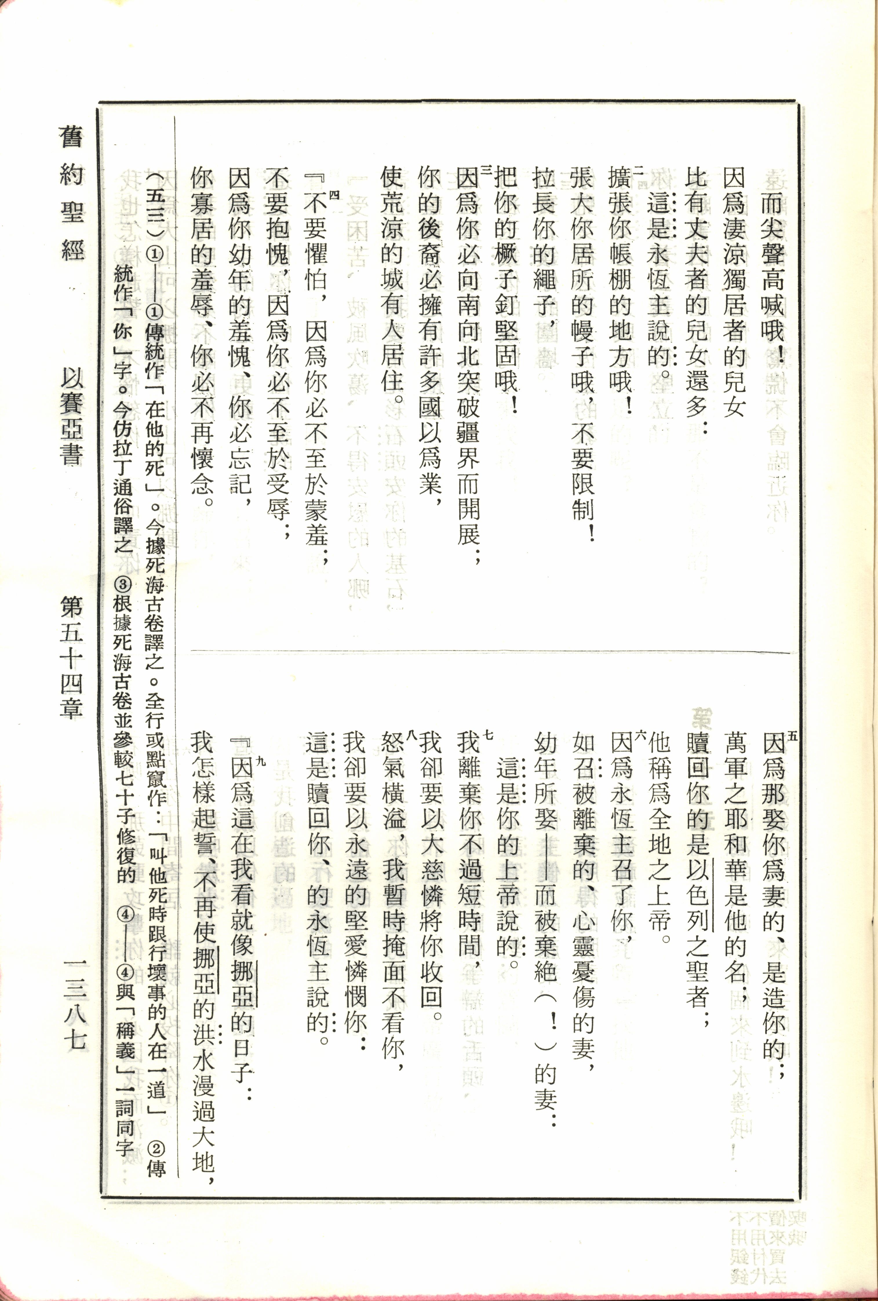 1970年新舊約全書(呂振中譯本) 以賽亞書 54 章 2 節到 54 章 9 節