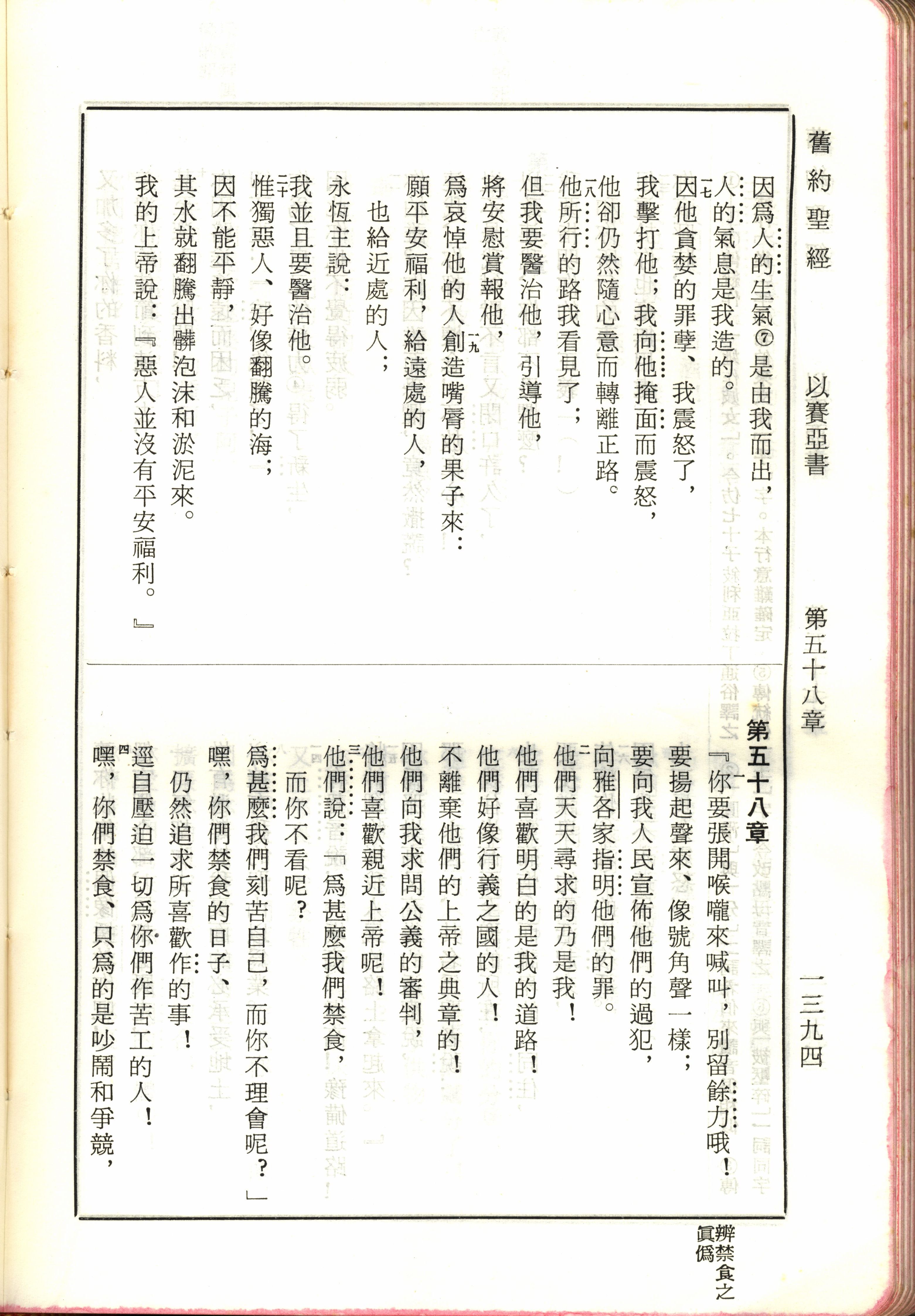 1970年新舊約全書(呂振中譯本) 以賽亞書 57 章 17 節到 58 章 4 節
