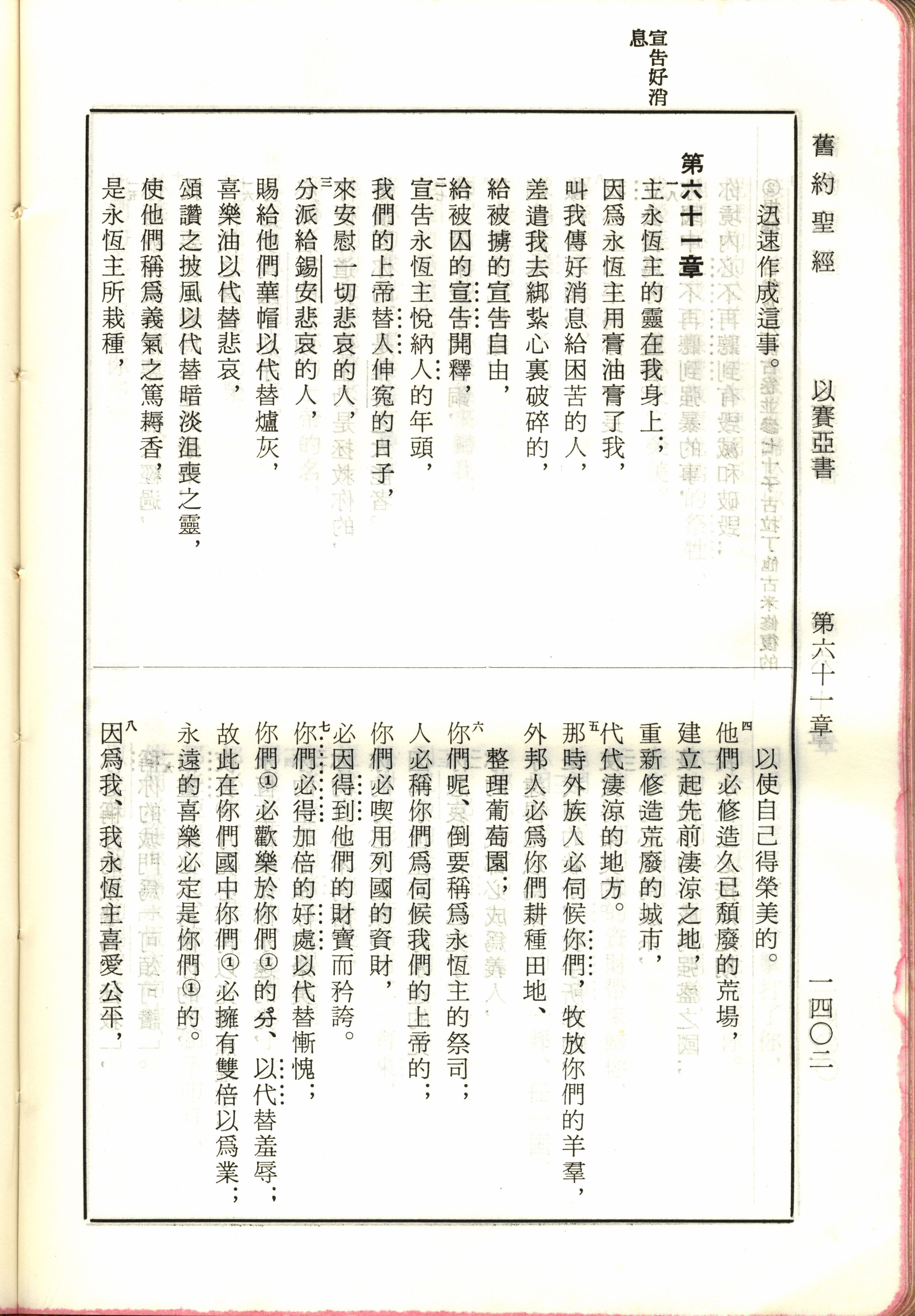 1970年新舊約全書(呂振中譯本) 以賽亞書 61 章 1 節到 61 章 8 節
