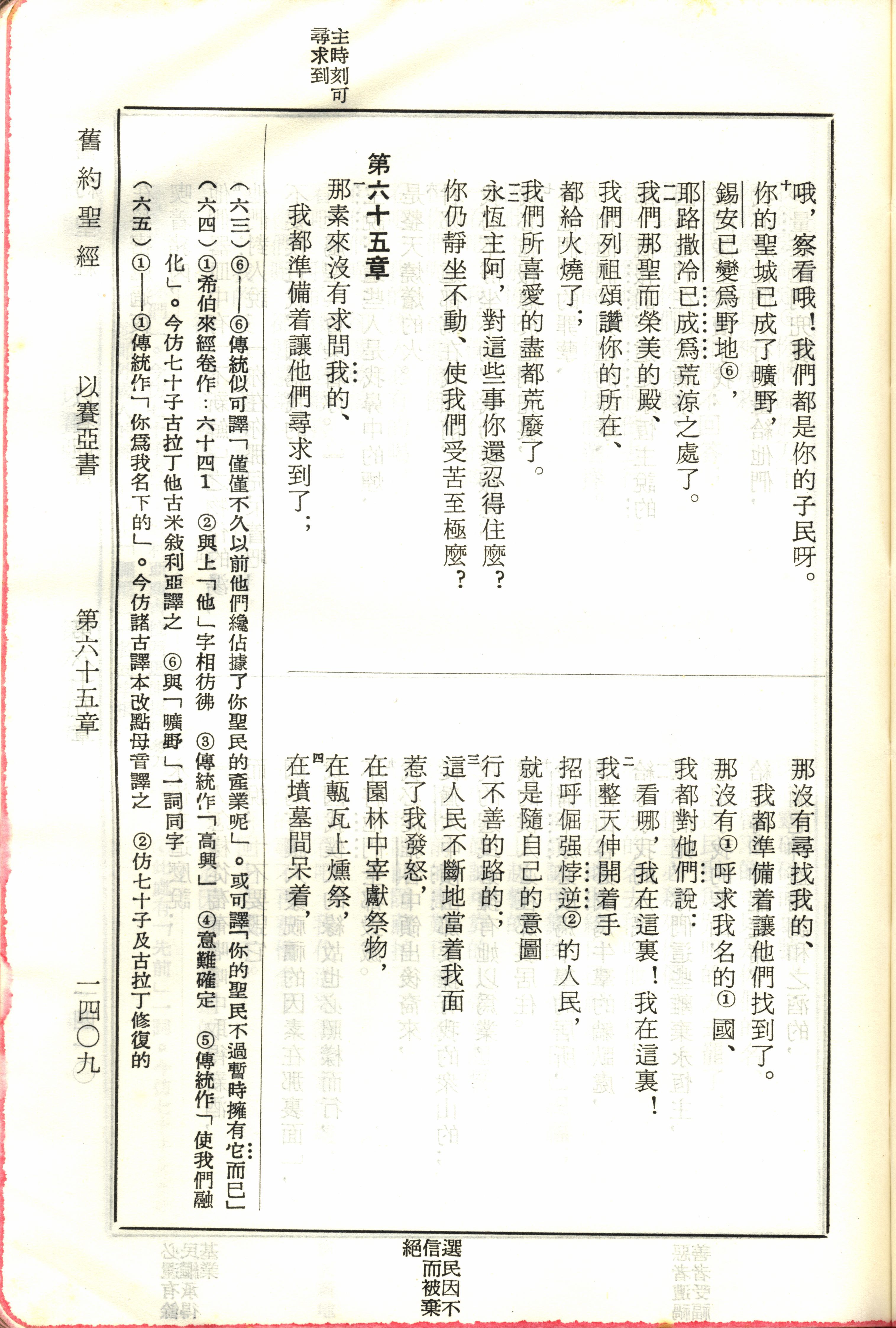 1970年新舊約全書(呂振中譯本) 以賽亞書 64 章 10 節到 65 章 4 節