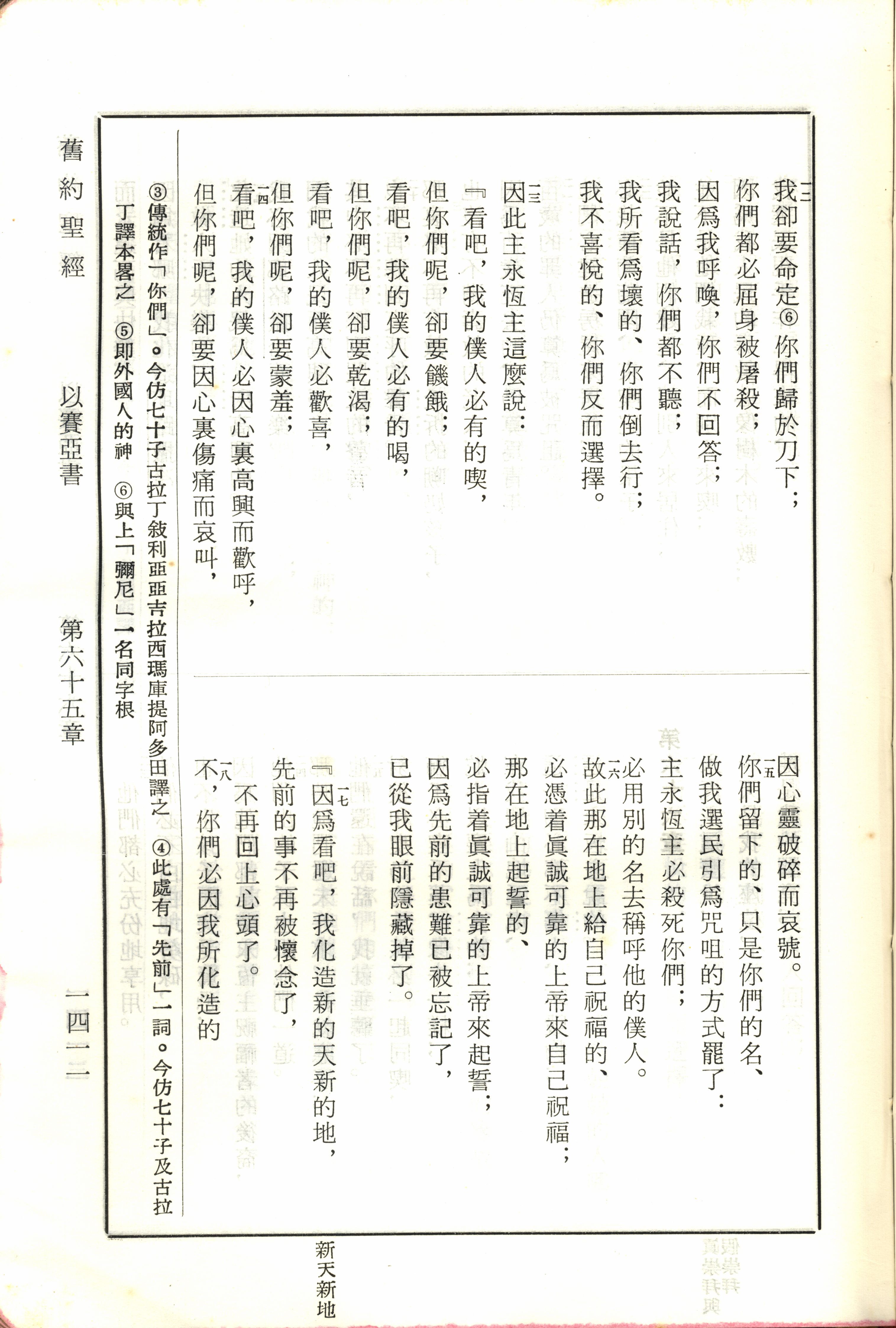 1970年新舊約全書(呂振中譯本) 以賽亞書 65 章 12 節到 65 章 18 節