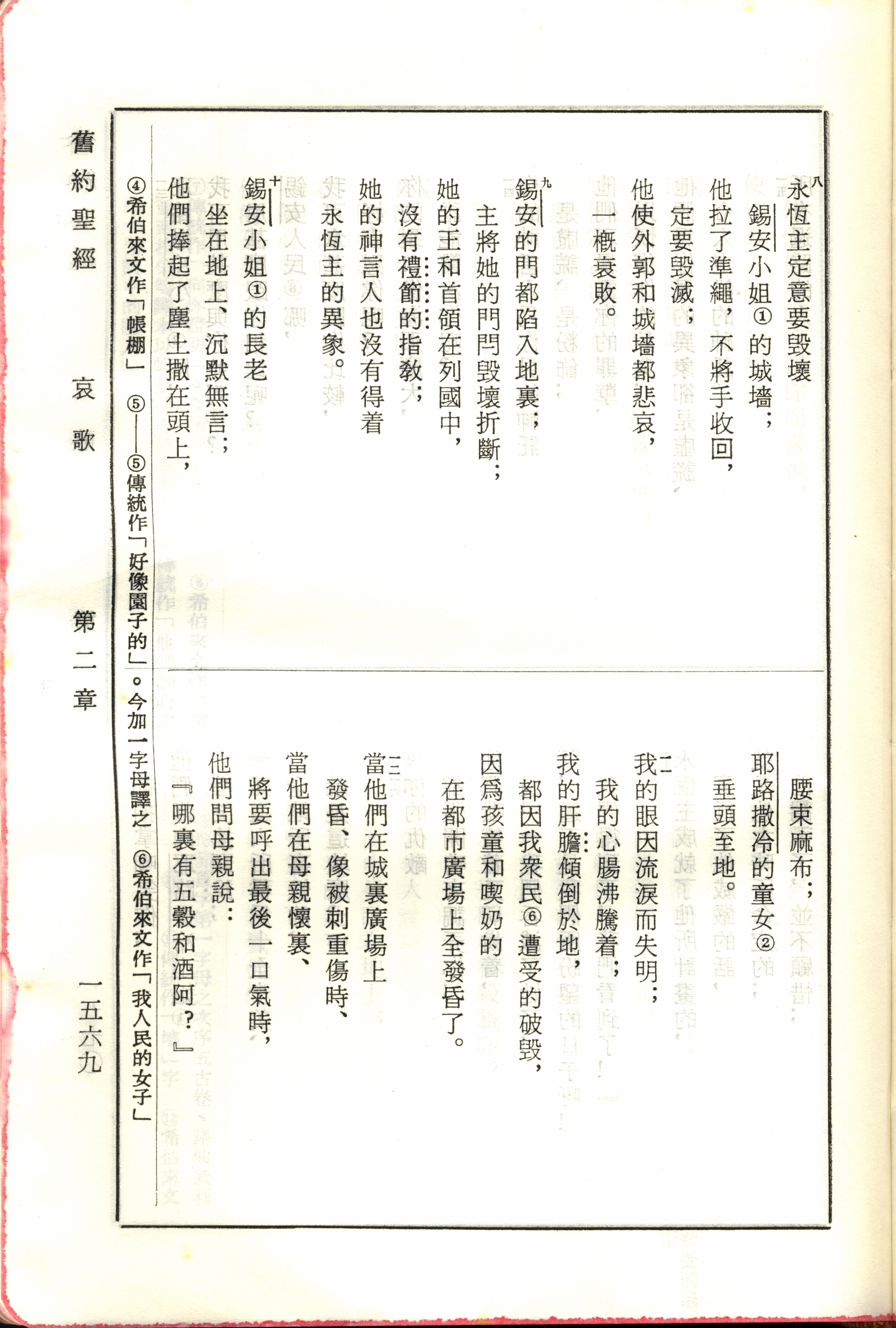 1970年新舊約全書(呂振中譯本) 耶利米哀歌 2 章 8 節到 2 章 12 節