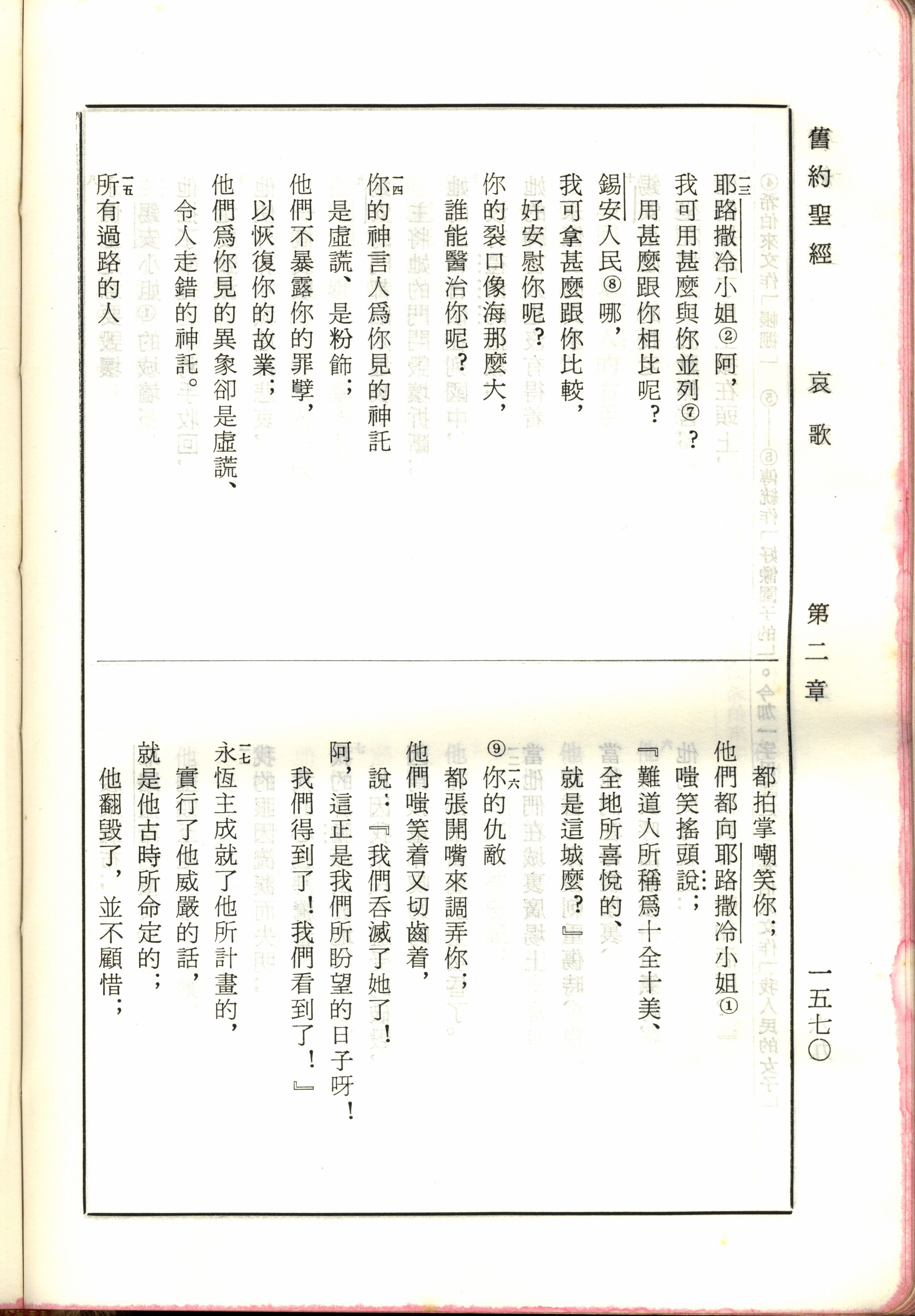 1970年新舊約全書(呂振中譯本) 耶利米哀歌 2 章 13 節到 2 章 17 節