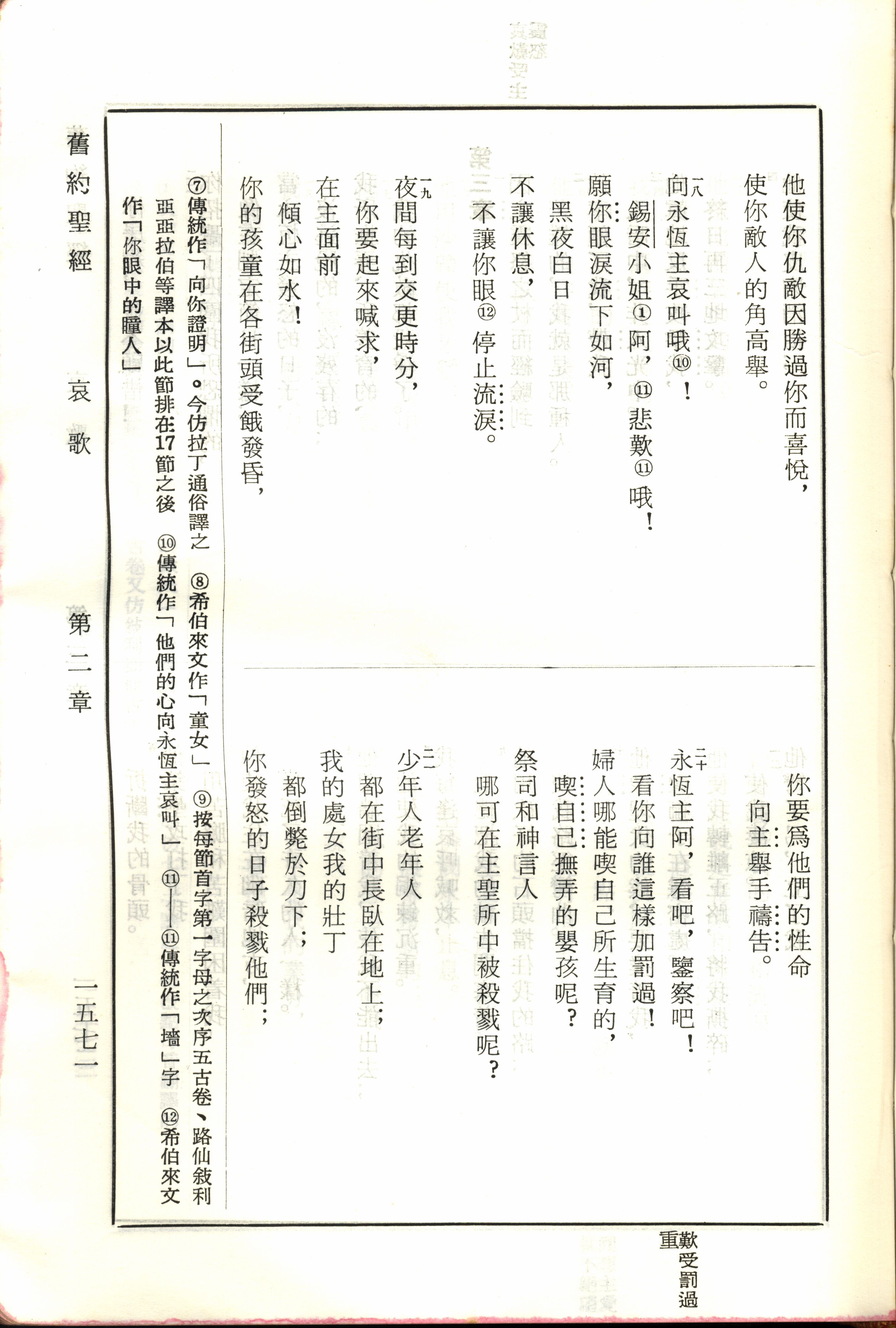 1970年新舊約全書(呂振中譯本) 耶利米哀歌 2 章 18 節到 2 章 21 節