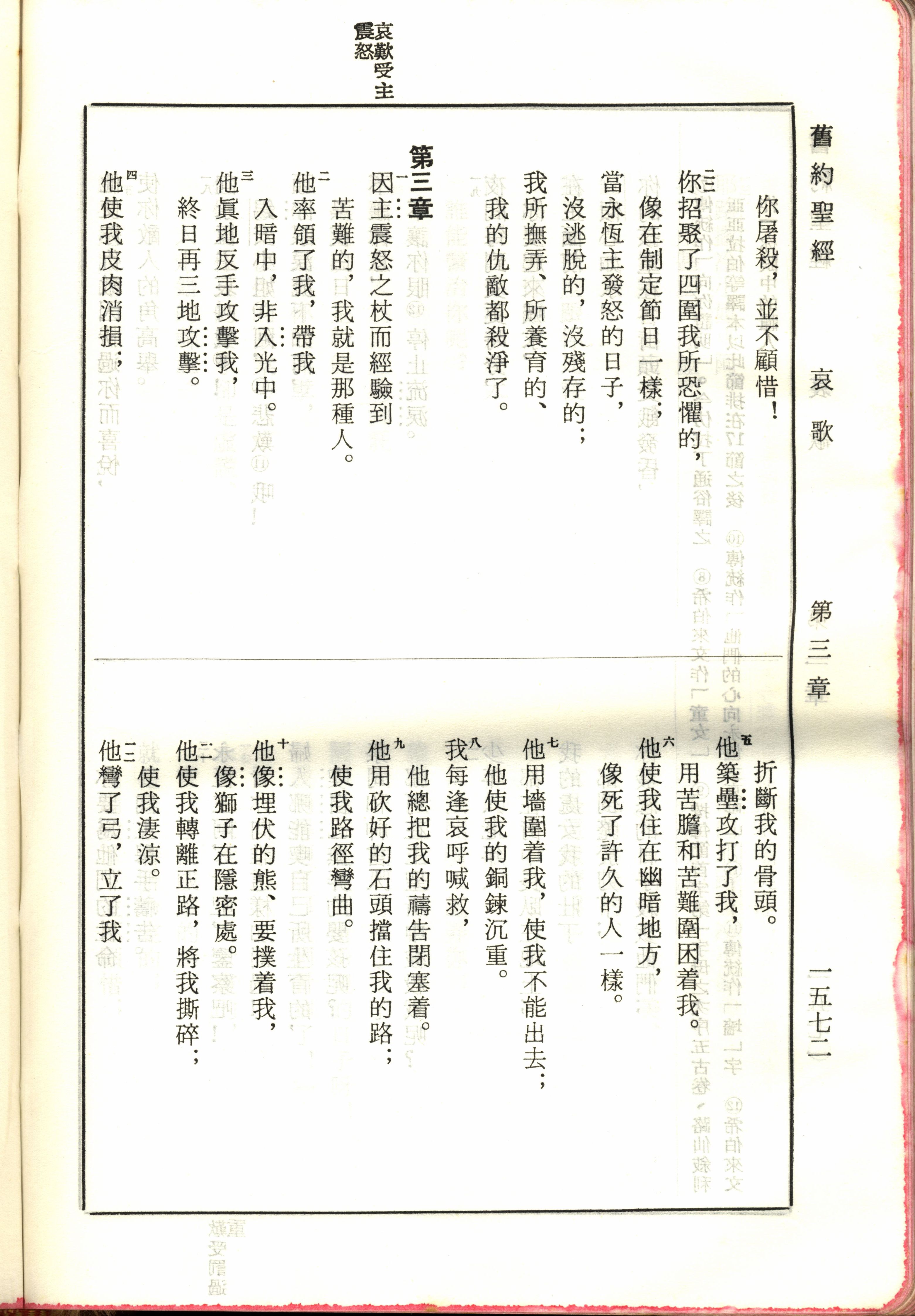 1970年新舊約全書(呂振中譯本) 耶利米哀歌 2 章 22 節到 3 章 12 節