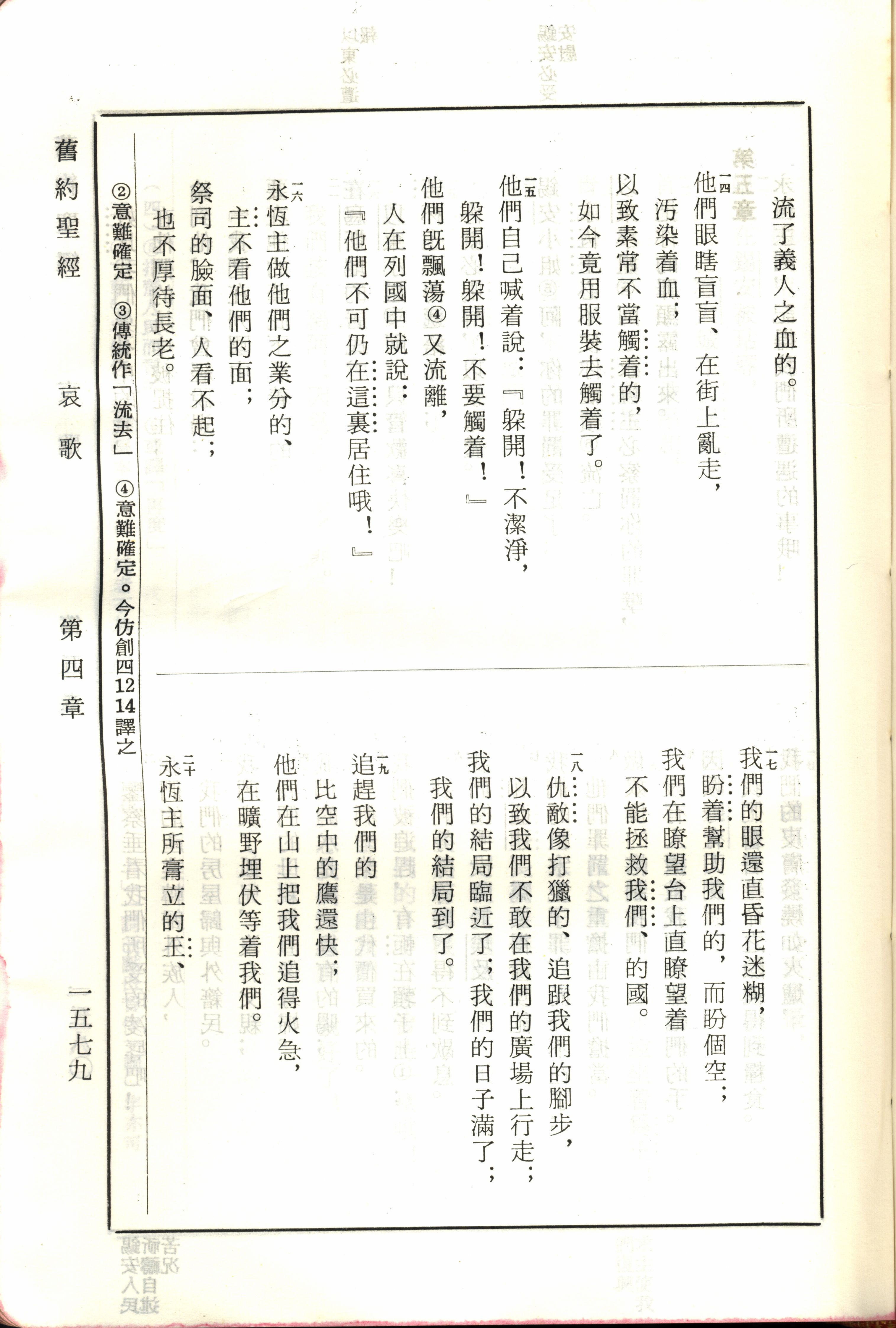 1970年新舊約全書(呂振中譯本) 耶利米哀歌 4 章 14 節到 4 章 20 節