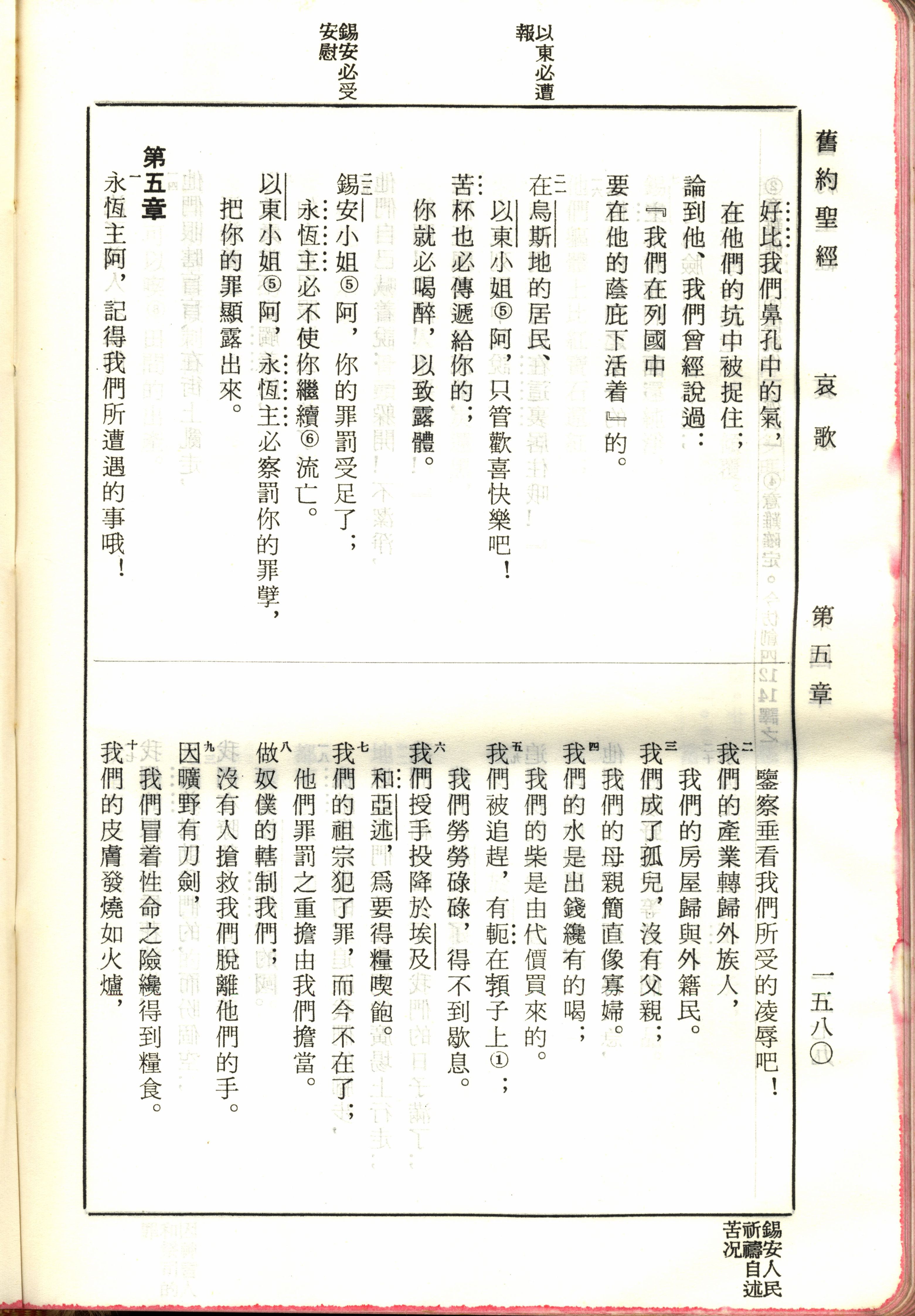 1970年新舊約全書(呂振中譯本) 耶利米哀歌 4 章 21 節到 5 章 10 節