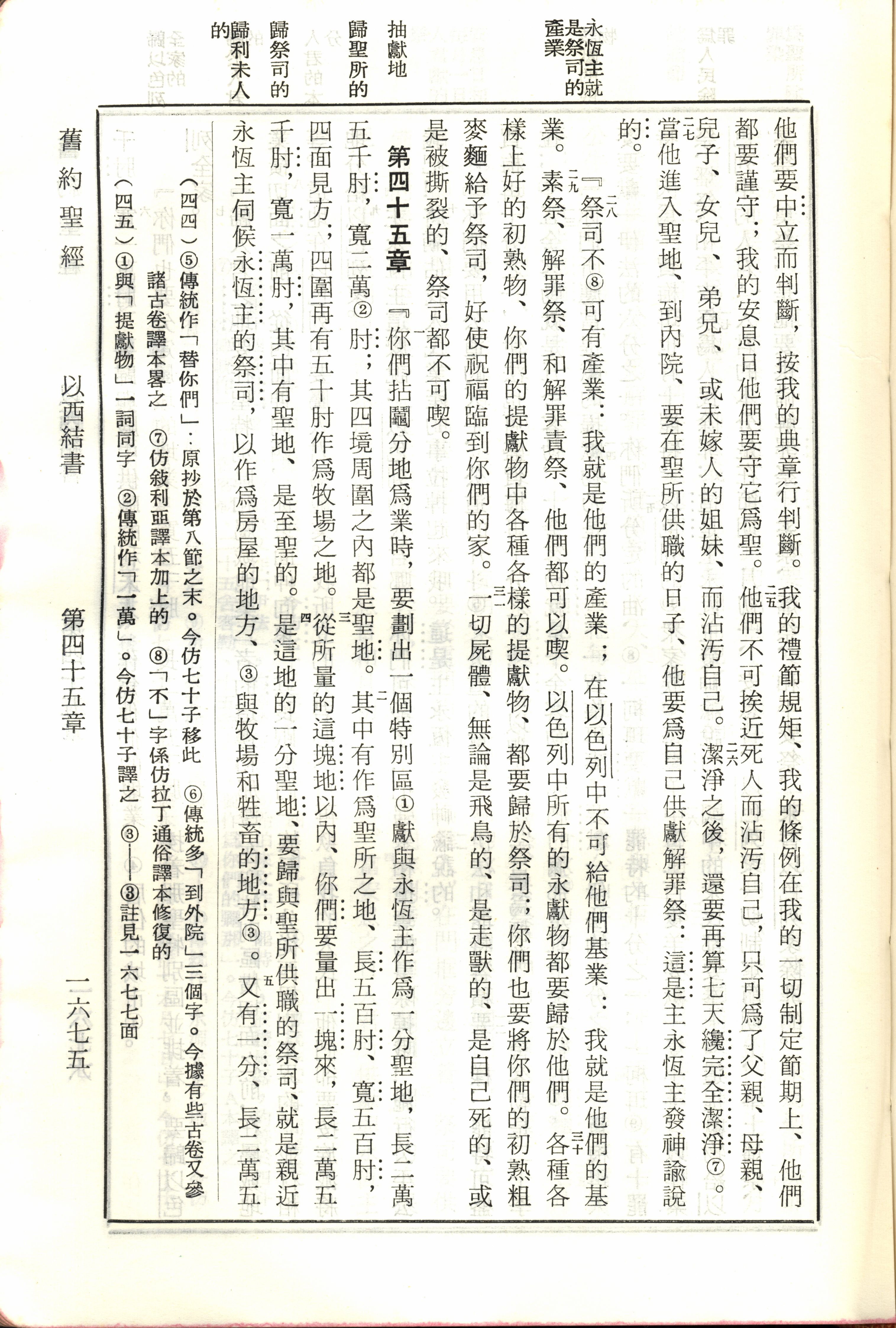 1970年新舊約全書(呂振中譯本) 以西結書 44 章 25 節到 45 章 5 節