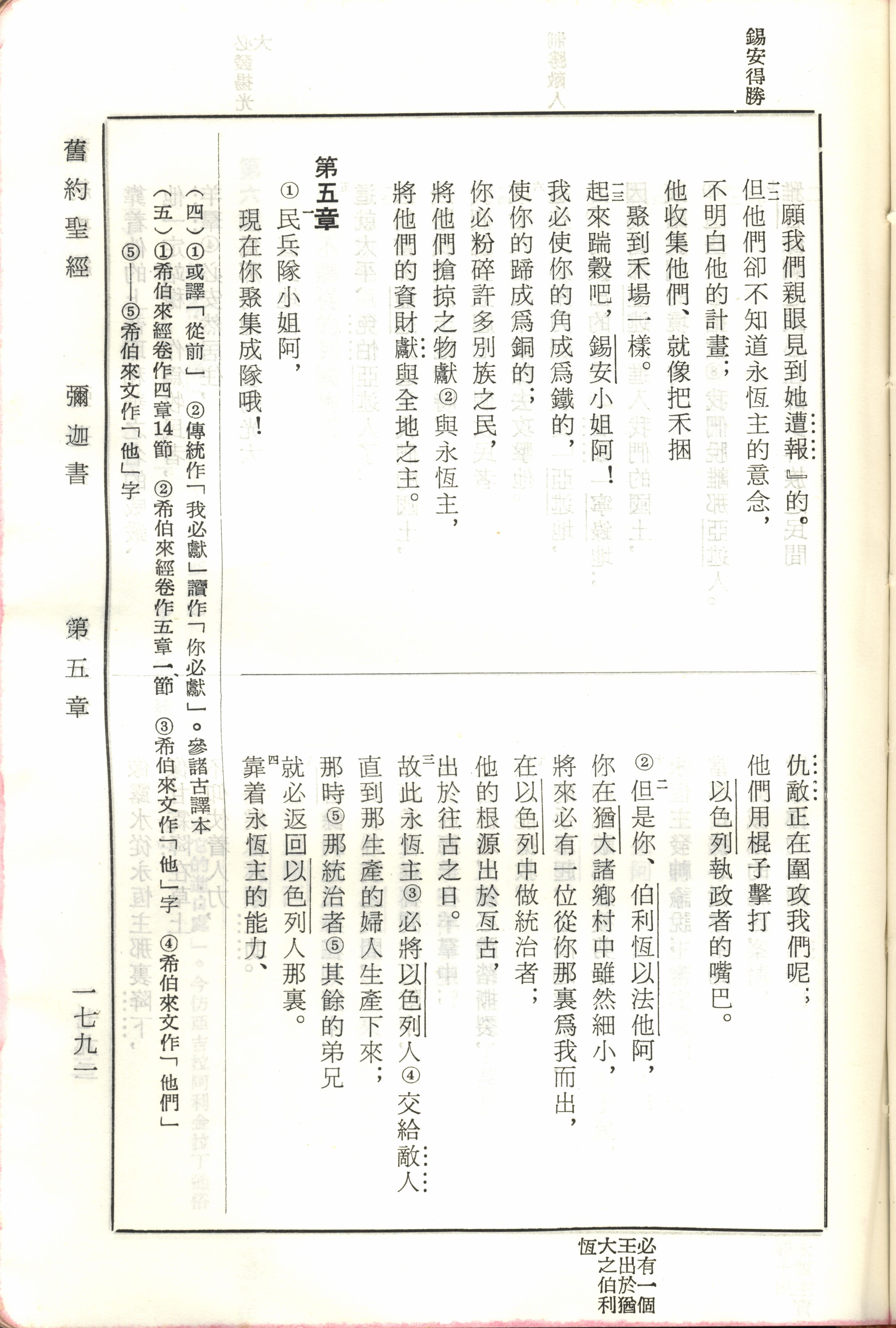 1970年新舊約全書(呂振中譯本) 彌迦書 4 章 12 節到 5 章 4 節