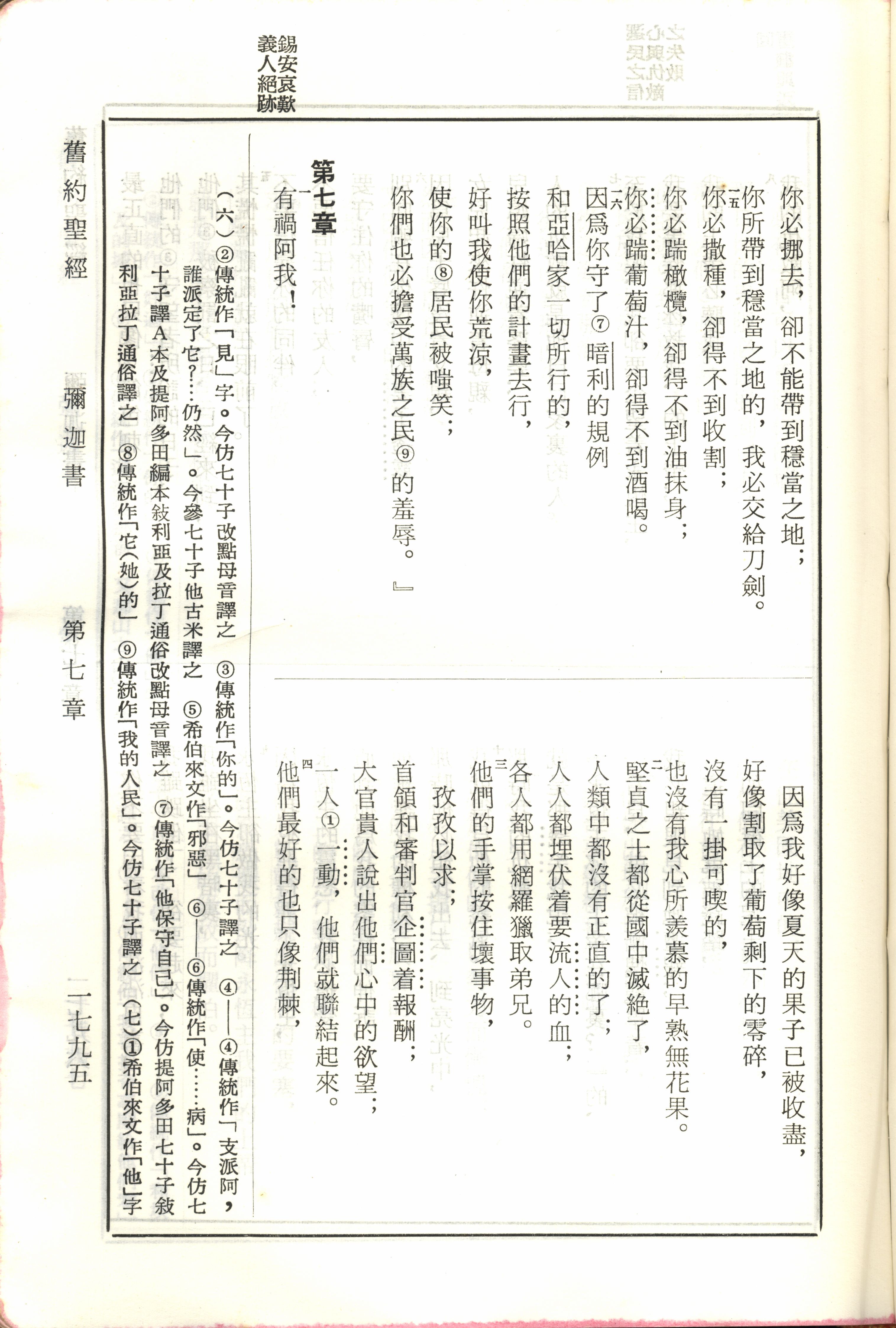 1970年新舊約全書(呂振中譯本) 彌迦書 6 章 15 節到 7 章 4 節