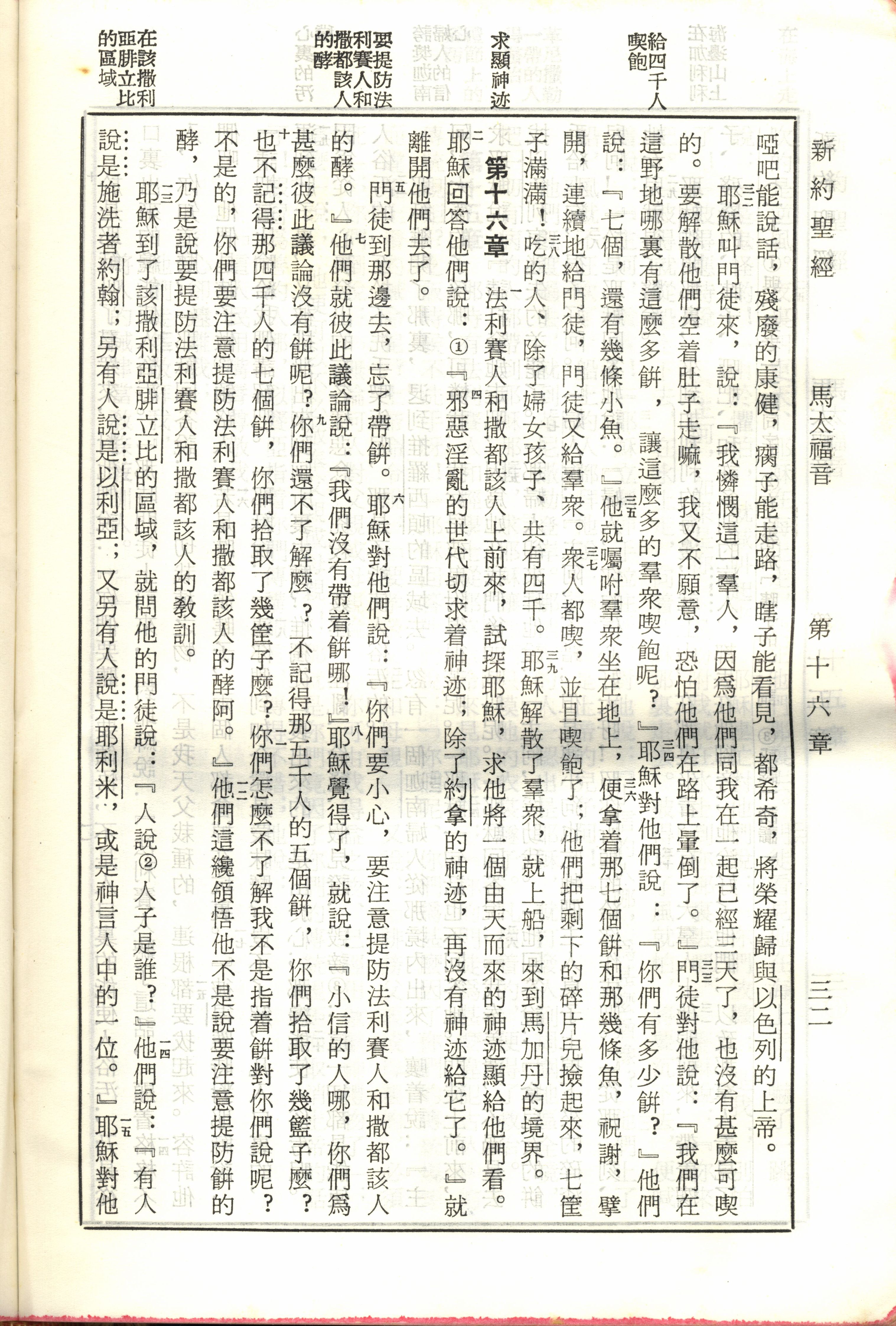 1970年新舊約全書(呂振中譯本) 馬太福音 15 章 32 節到 16 章 15 節