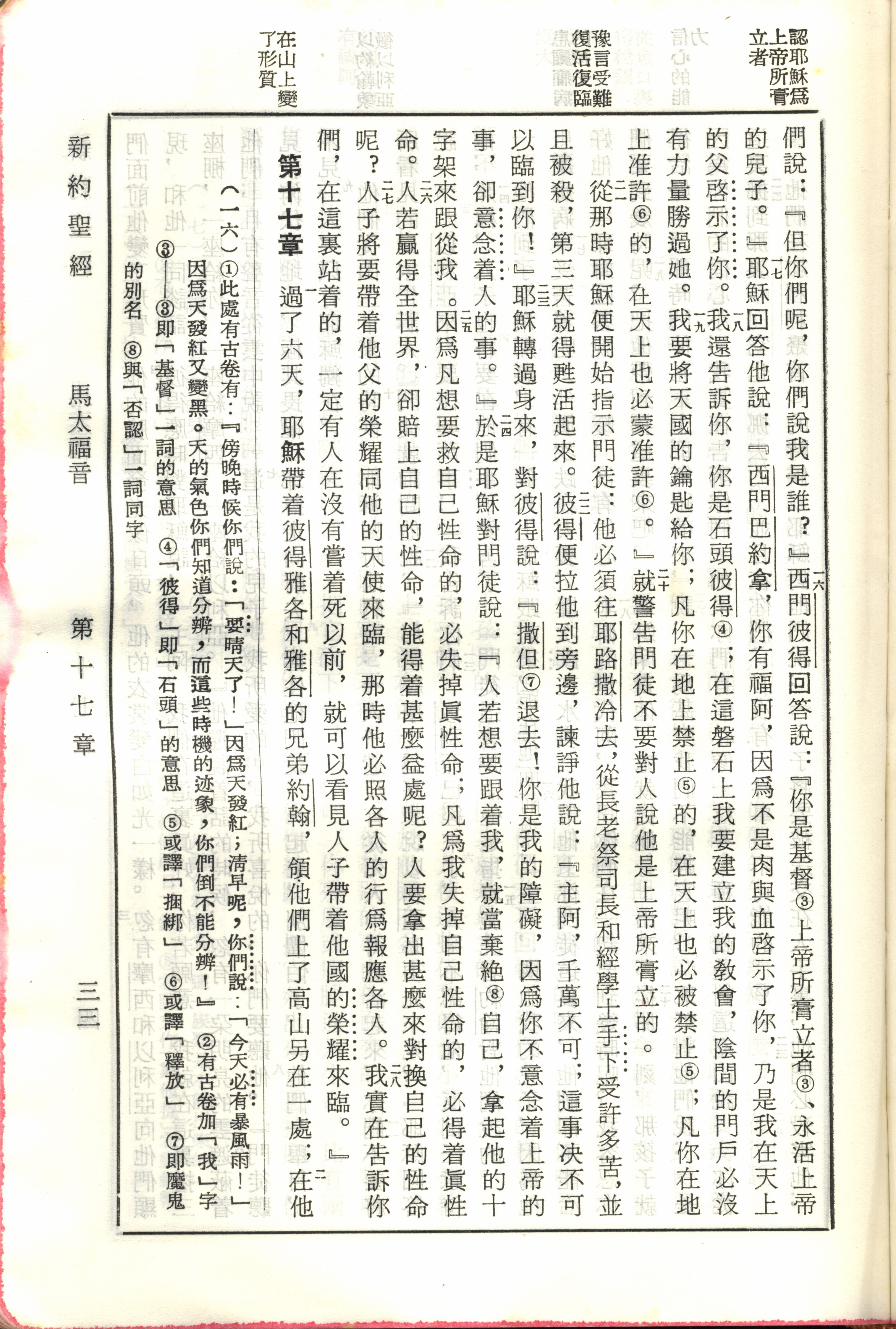 1970年新舊約全書(呂振中譯本) 馬太福音 16 章 16 節到 17 章 2 節