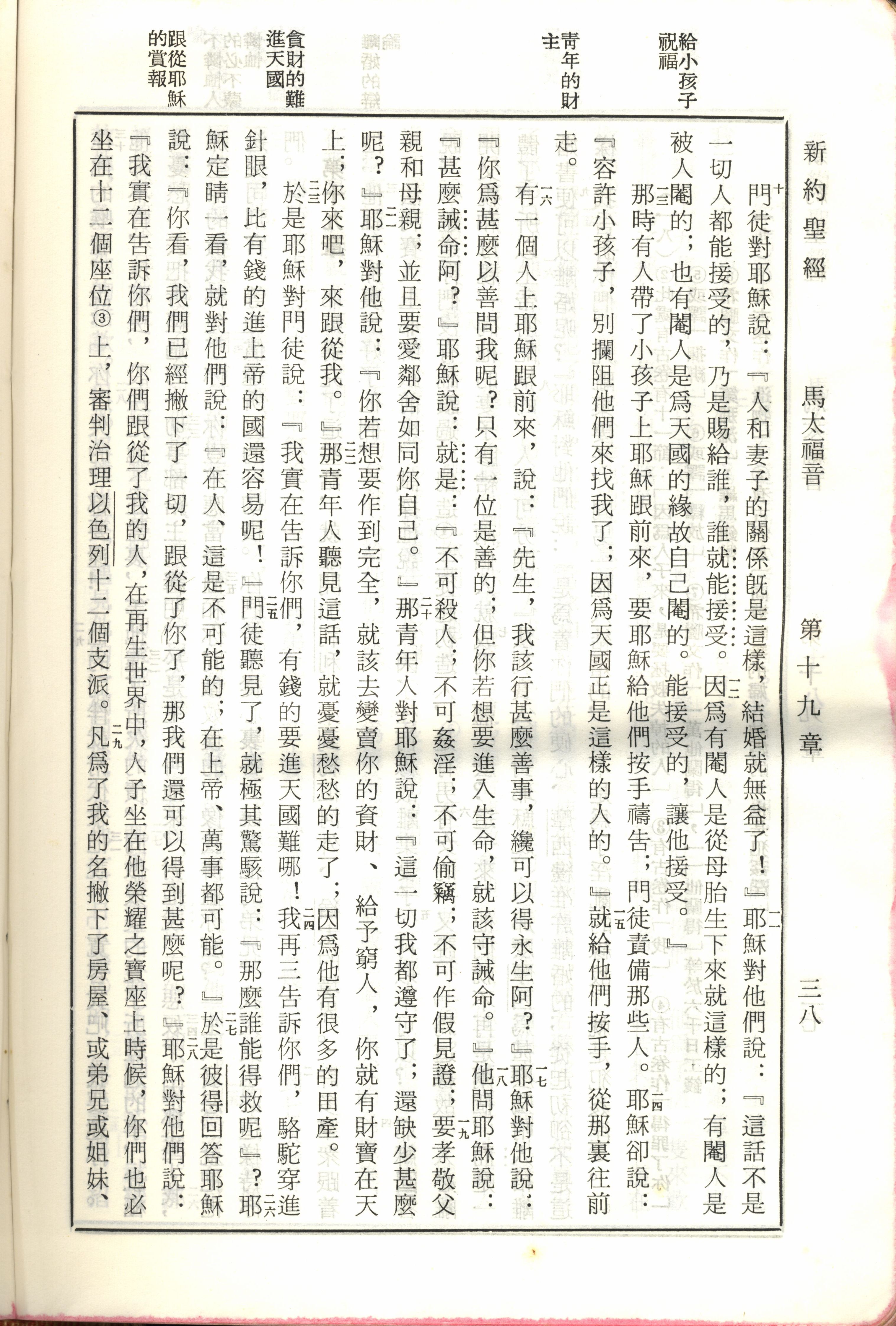 1970年新舊約全書(呂振中譯本) 馬太福音 19 章 10 節到 19 章 29 節
