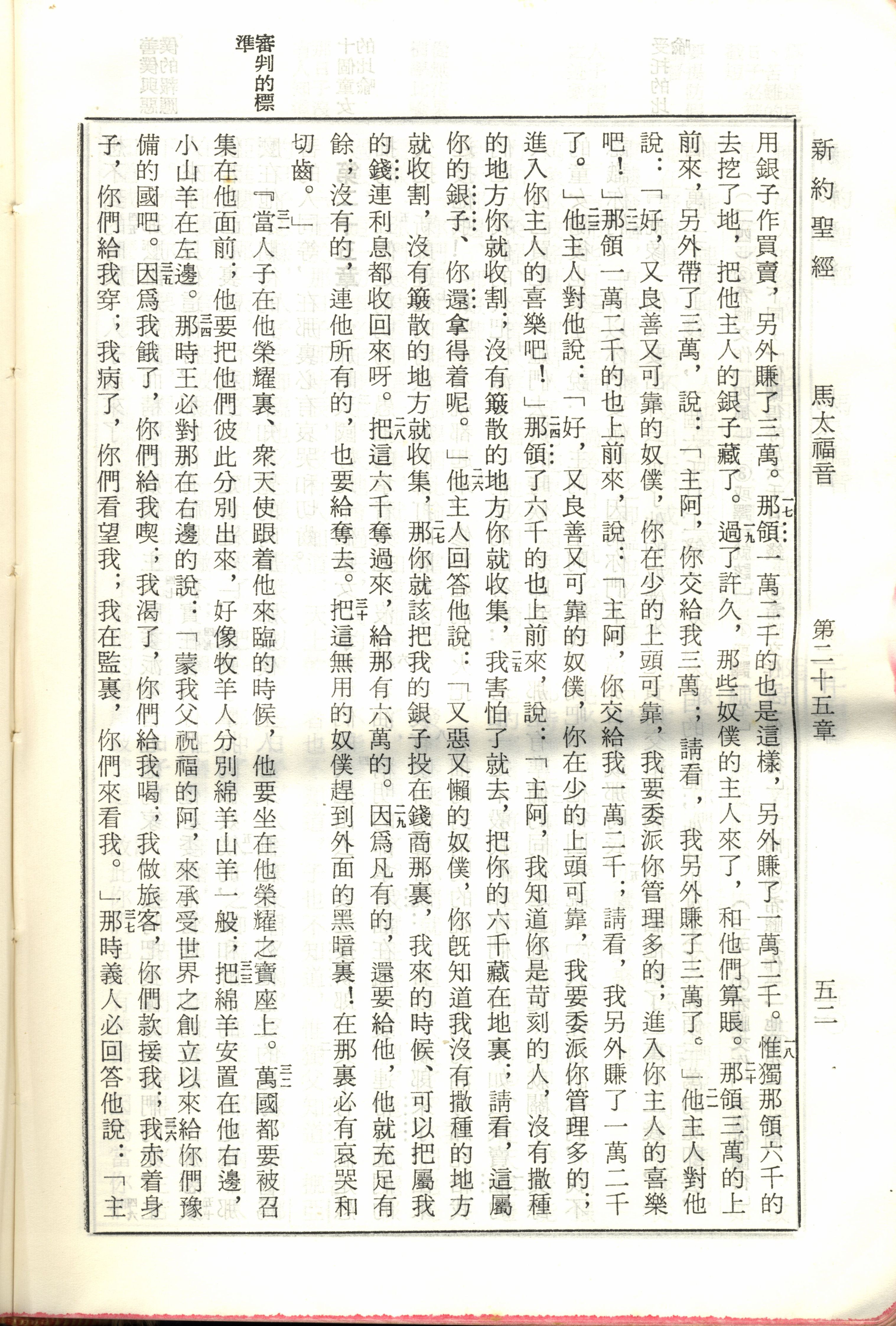 1970年新舊約全書(呂振中譯本) 馬太福音 25 章 17 節到 25 章 37 節