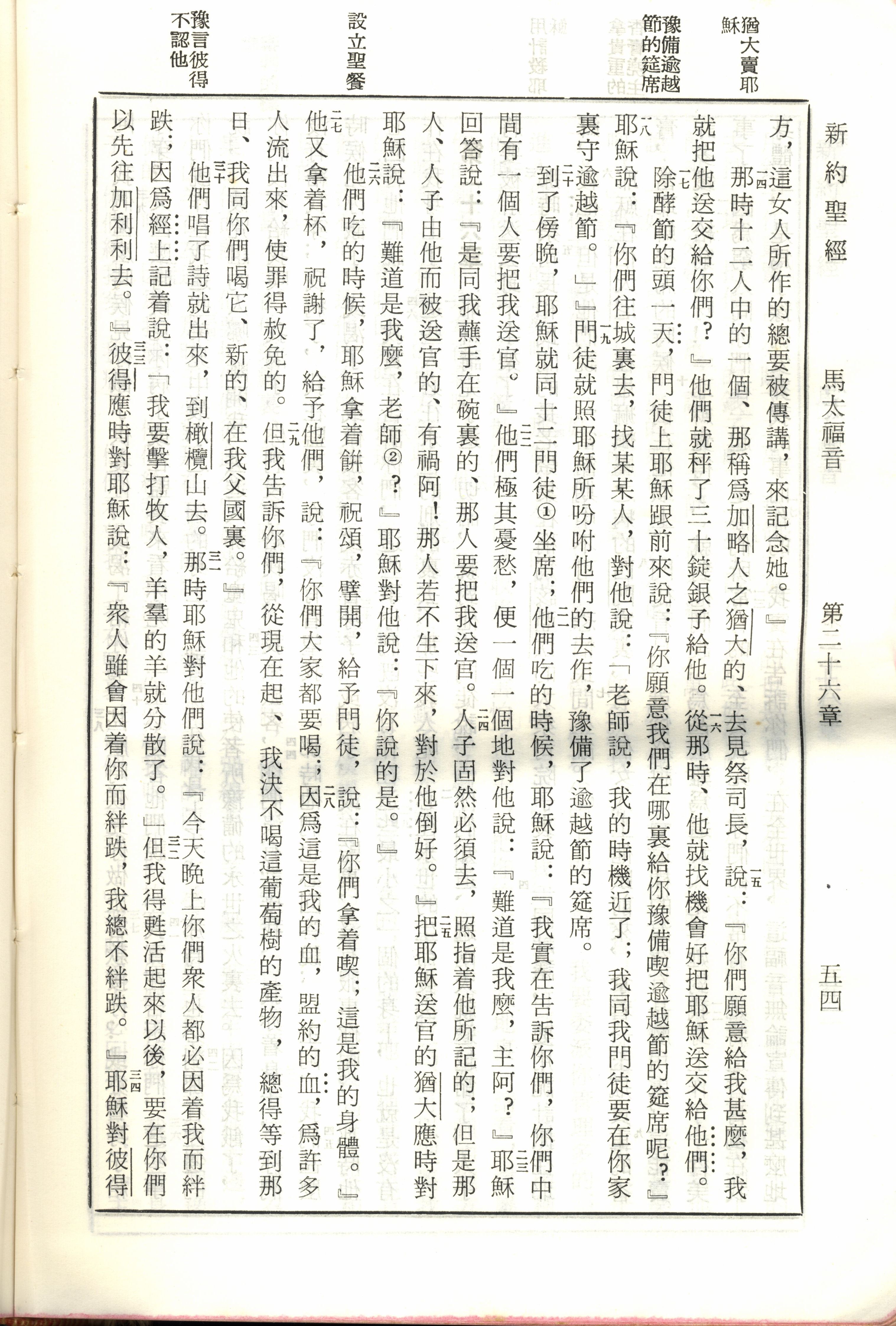 1970年新舊約全書(呂振中譯本) 馬太福音 26 章 14 節到 26 章 34 節