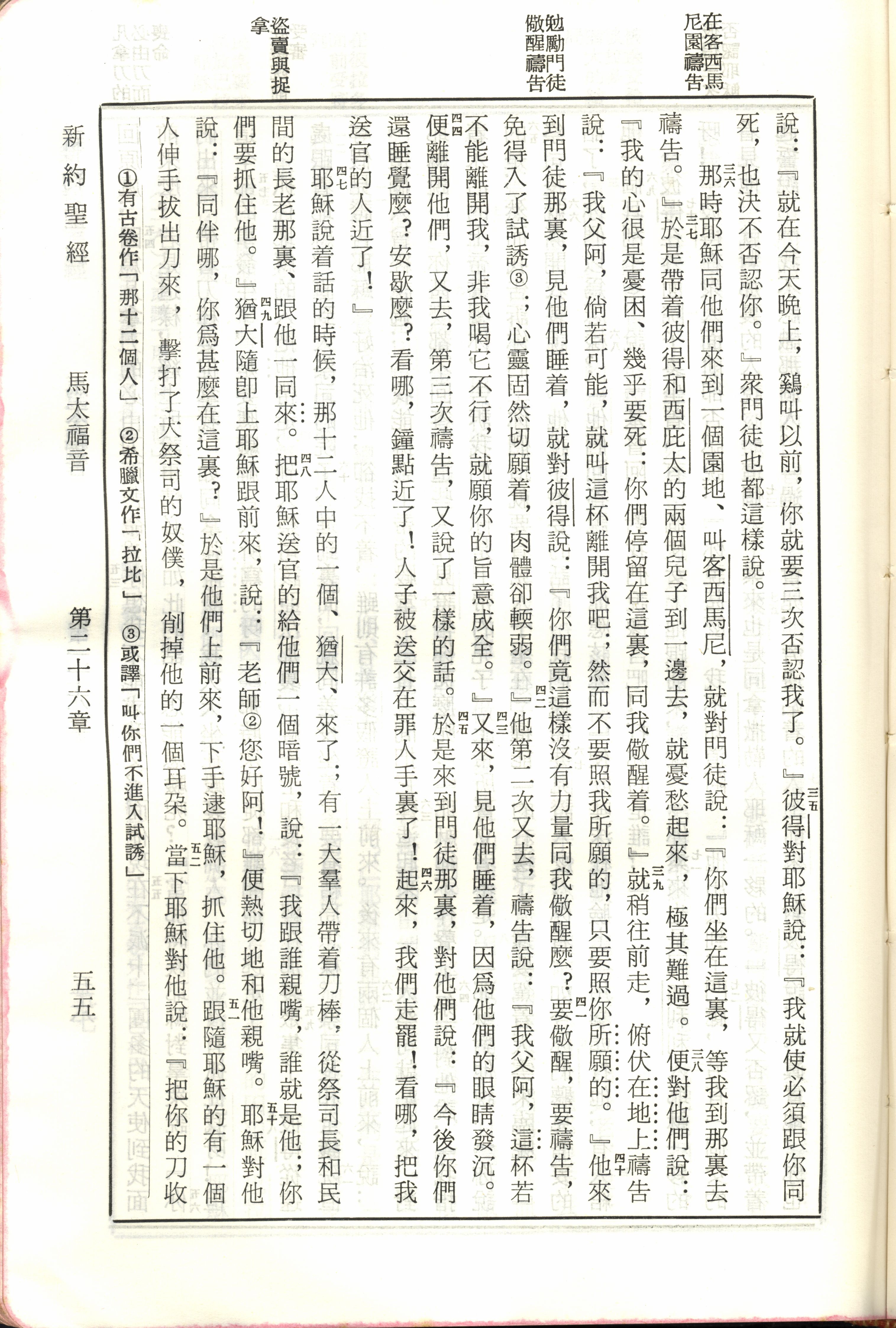 1970年新舊約全書(呂振中譯本) 馬太福音 26 章 35 節到 26 章 52 節